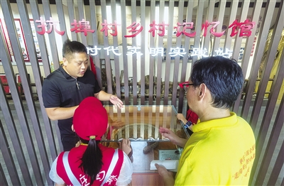 记者在抗埠村乡村记忆馆采风。