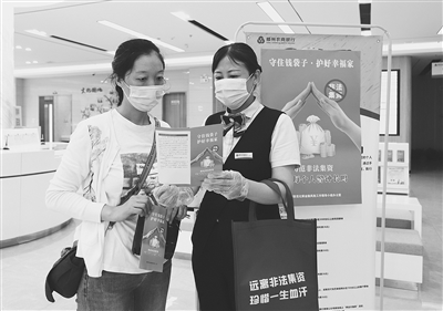 图为8月23日该行宣传员在向客户讲解非法集资的危害性。