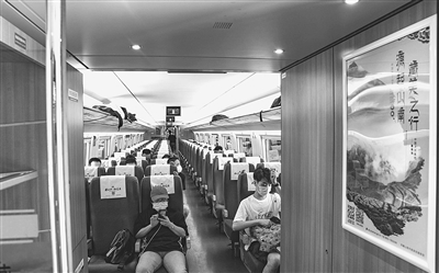 8月25日在上海拍摄的“藏美之行 源起山南”高铁冠名列车车厢内部。
