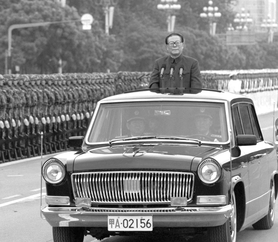 1999年10月1日,中华人民共和国成立50周年盛大庆典在北京天安门广场举行。江泽民同志检阅由人民解放军陆海空三军和人民武装警察部队、民兵预备役部队组成的地面方队。 (新华社发)