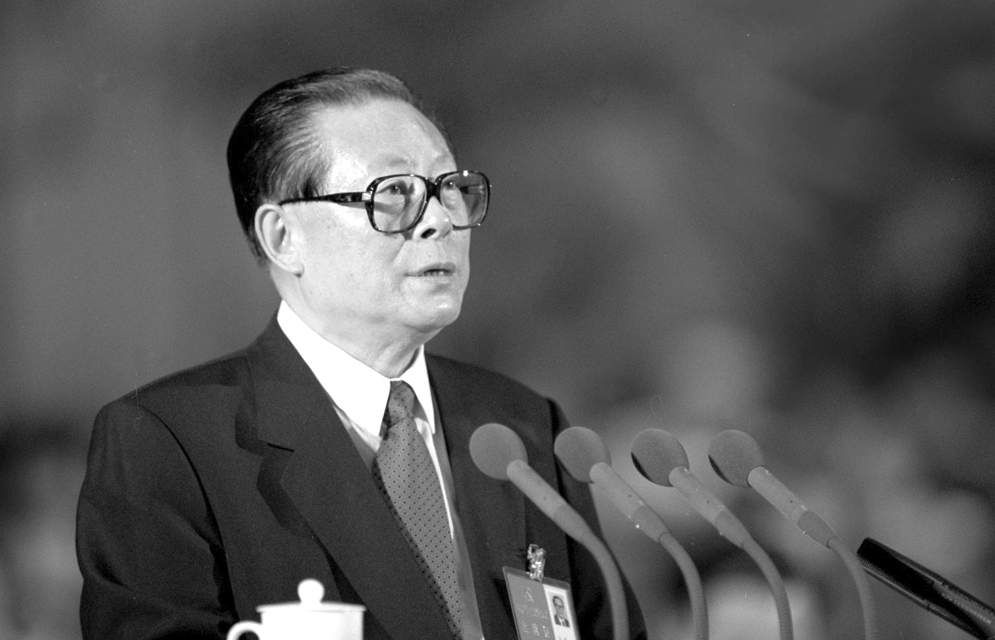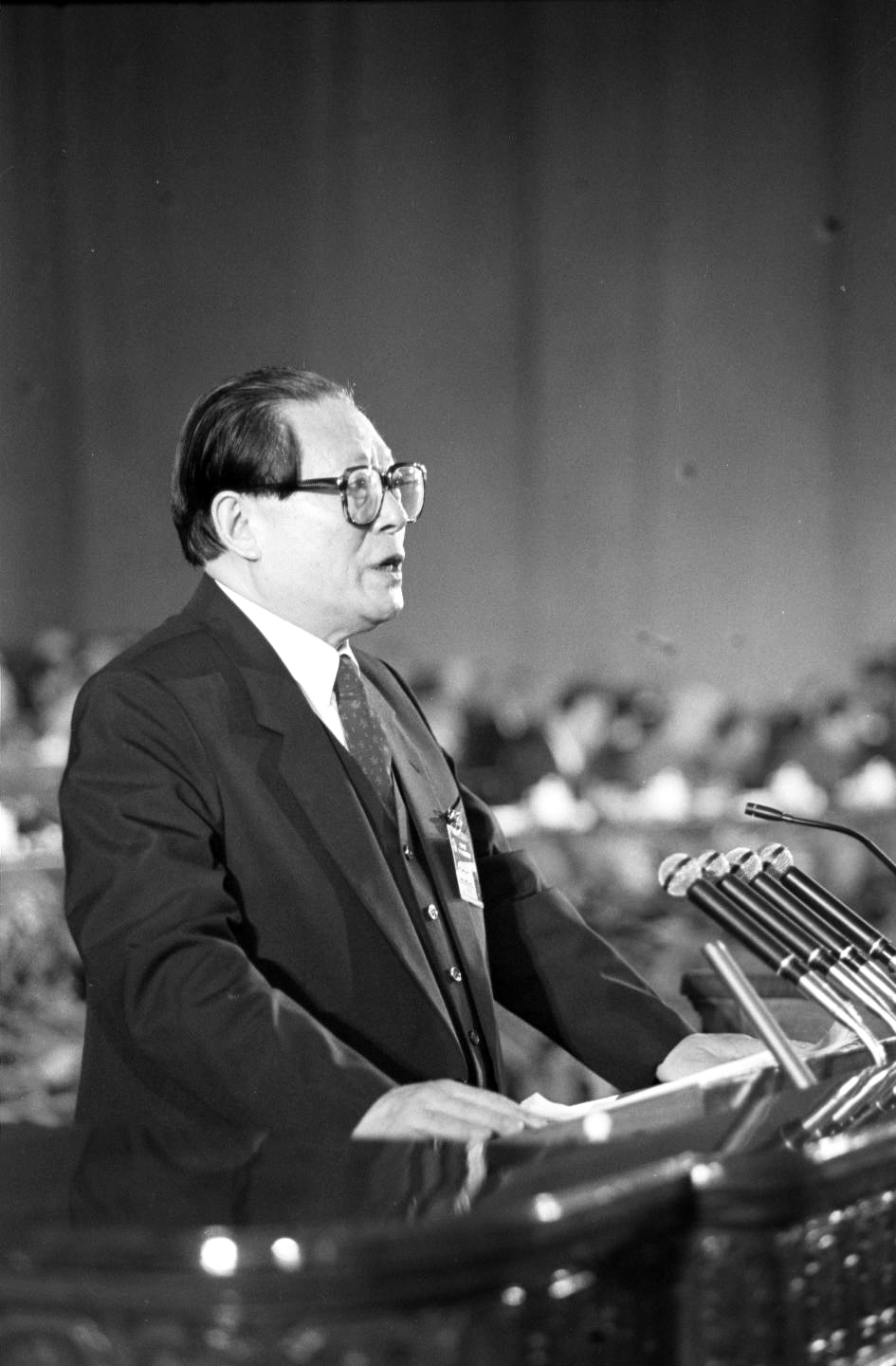 1997年9月12日,中国共产党第十五次全国代表大会在北京人民大会堂开幕。这是江泽民同志代表第十四届中央委员会作报告。 (新华社发)