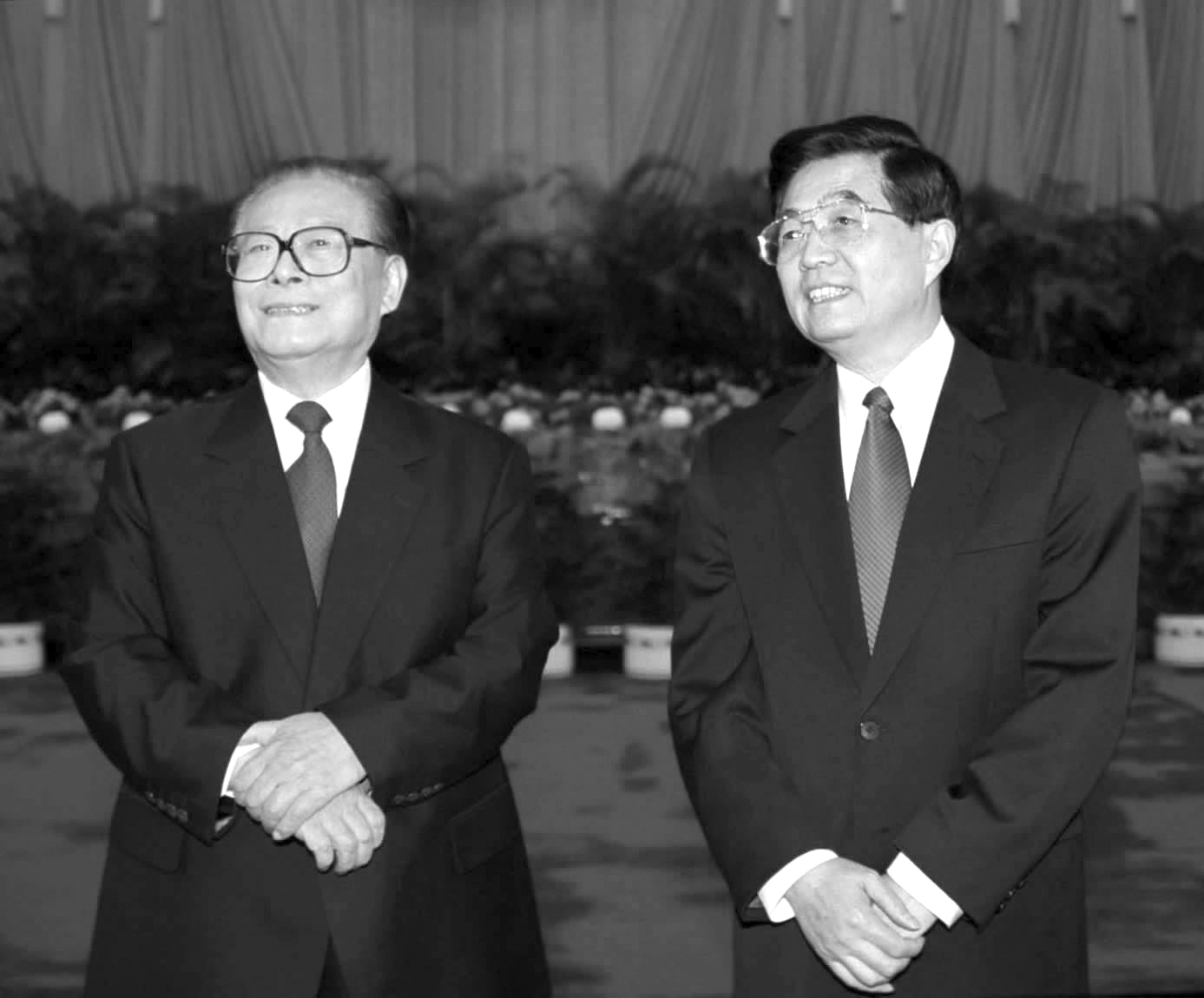 2002年11月15日,江泽民同志、胡锦涛同志在北京人民大会堂亲切会见出席党的十六大代表、特邀代表和列席人员并发表重要讲话。 (新华社发)