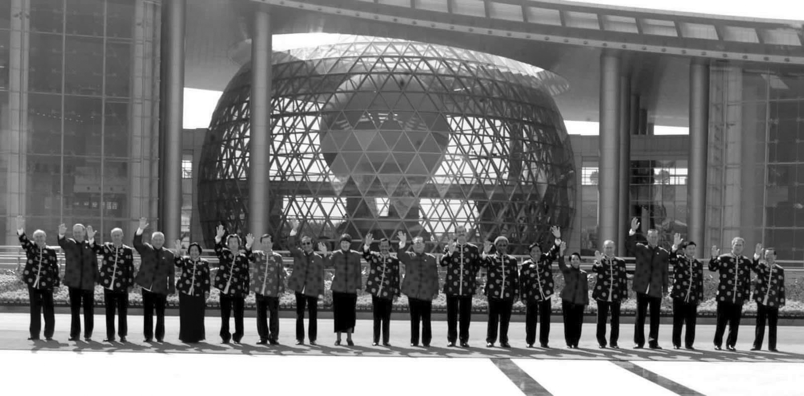 2001年10月21日,亚太经合组织第九次领导人非正式会议在上海举行。这是江泽民同志与参会的经济体领导人合影。 (新华社发)