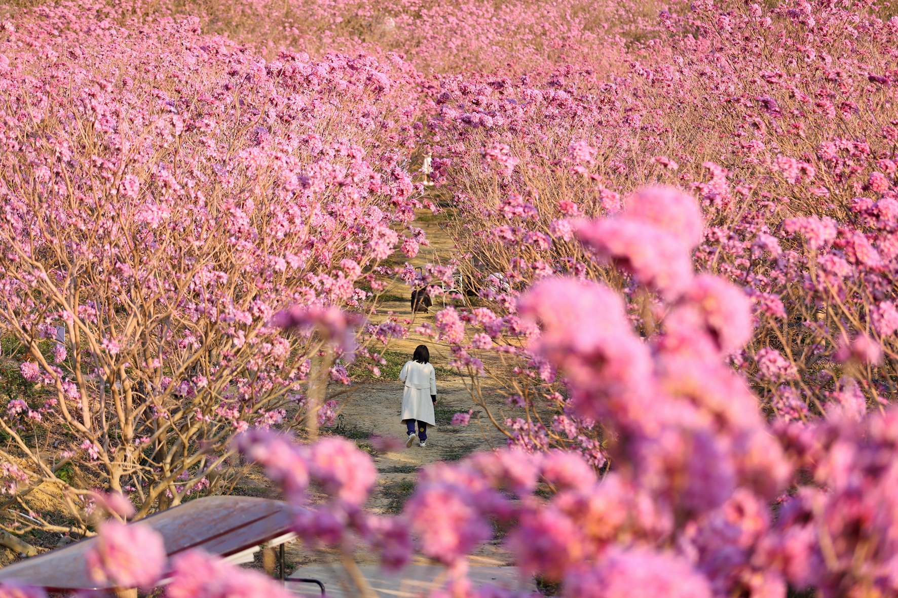 近日,广东省江门市新会区大泽镇山头坪大面积紫花风铃迎春绽放。 (新华社发)