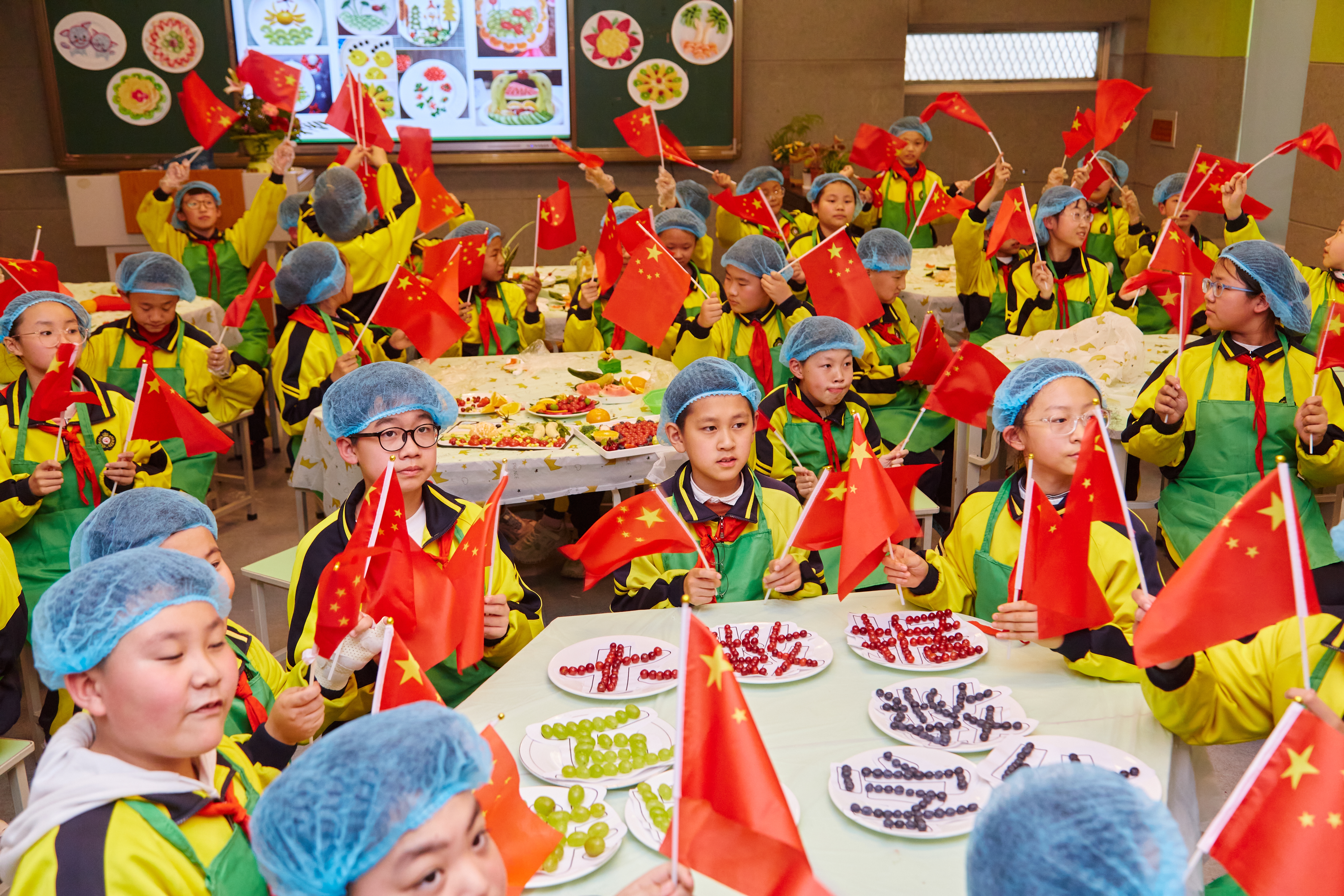 少先队员们利用劳动课进行创意水果拼盘,通过削、切、拼等巧手活动,掌握基本生活技能,巧妙运用各种水果特有的色彩和形状,制作出了中国地图和火箭模型。(记者 任翔 通讯员 王芳 孙晋伟 刘娜娜 摄)