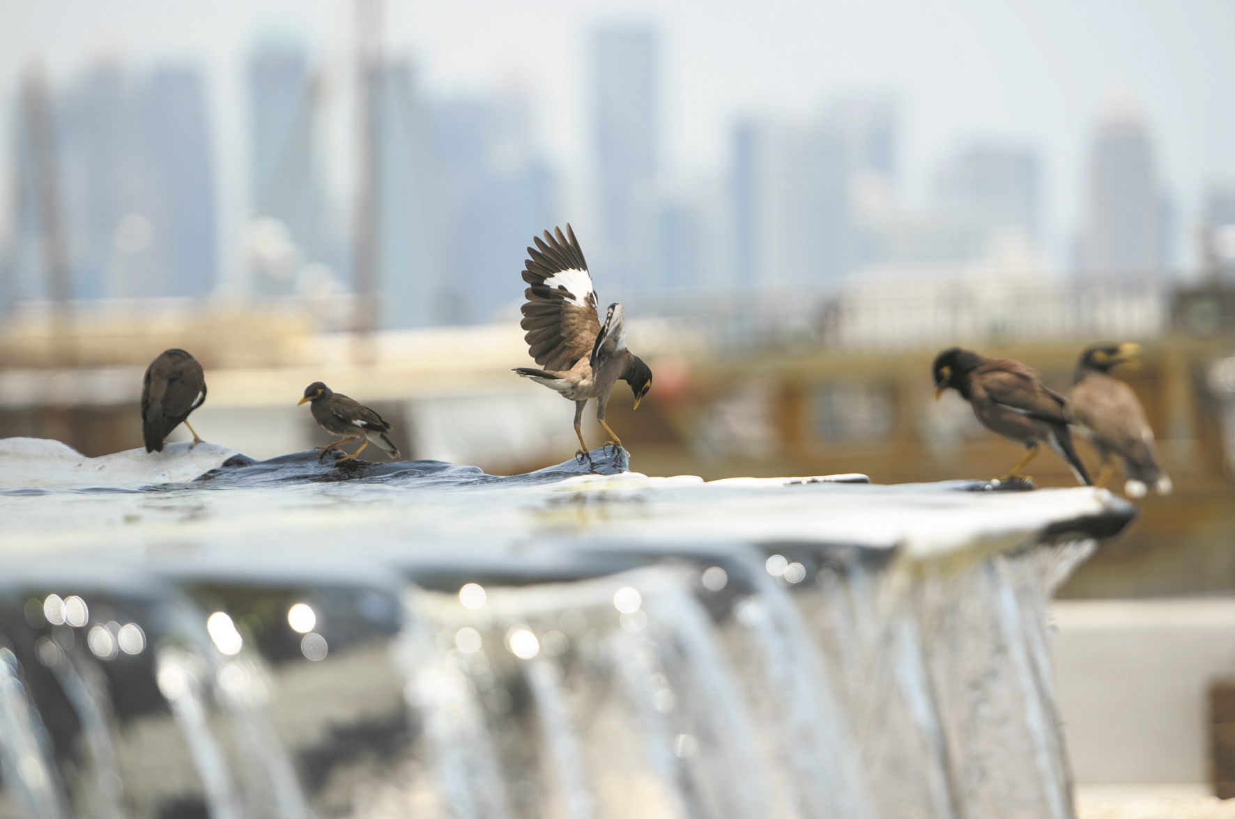 7月6日,在卡塔尔多哈,鸟群在喷泉处纳凉。