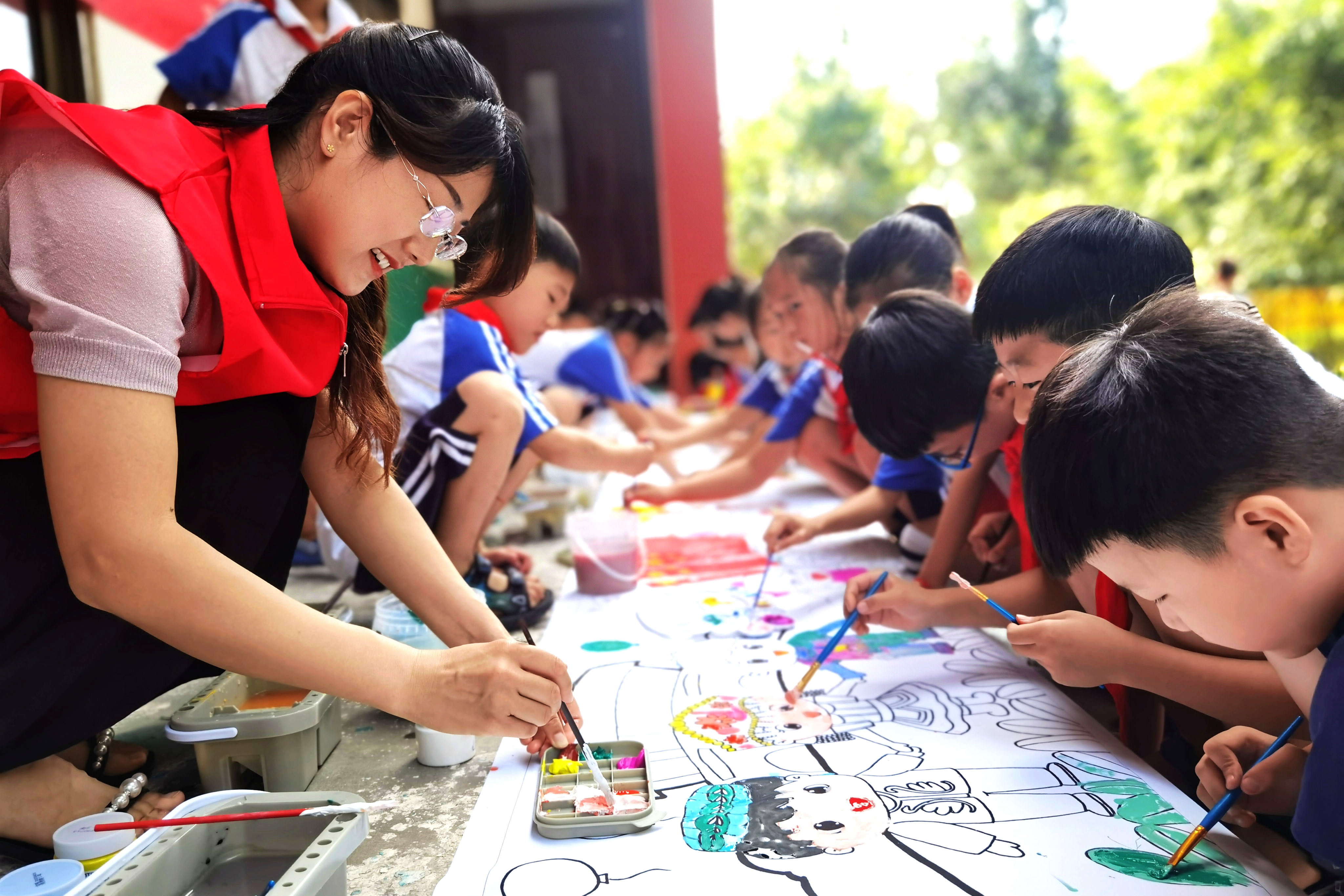 9月11日,滕州市官桥镇轩辕小学的学生们正在绘制长卷。当天,该镇开展了“国防教育进校园,点燃少年科技梦”主题绘画活动,培养学生爱党、爱国、爱军的朴素情怀,将爱国情怀从小播种在心田,促进学生国防意识养成,推动国防教育事业持续发展。(记者 王龙飞 通讯员 渠青 郭帅 摄)