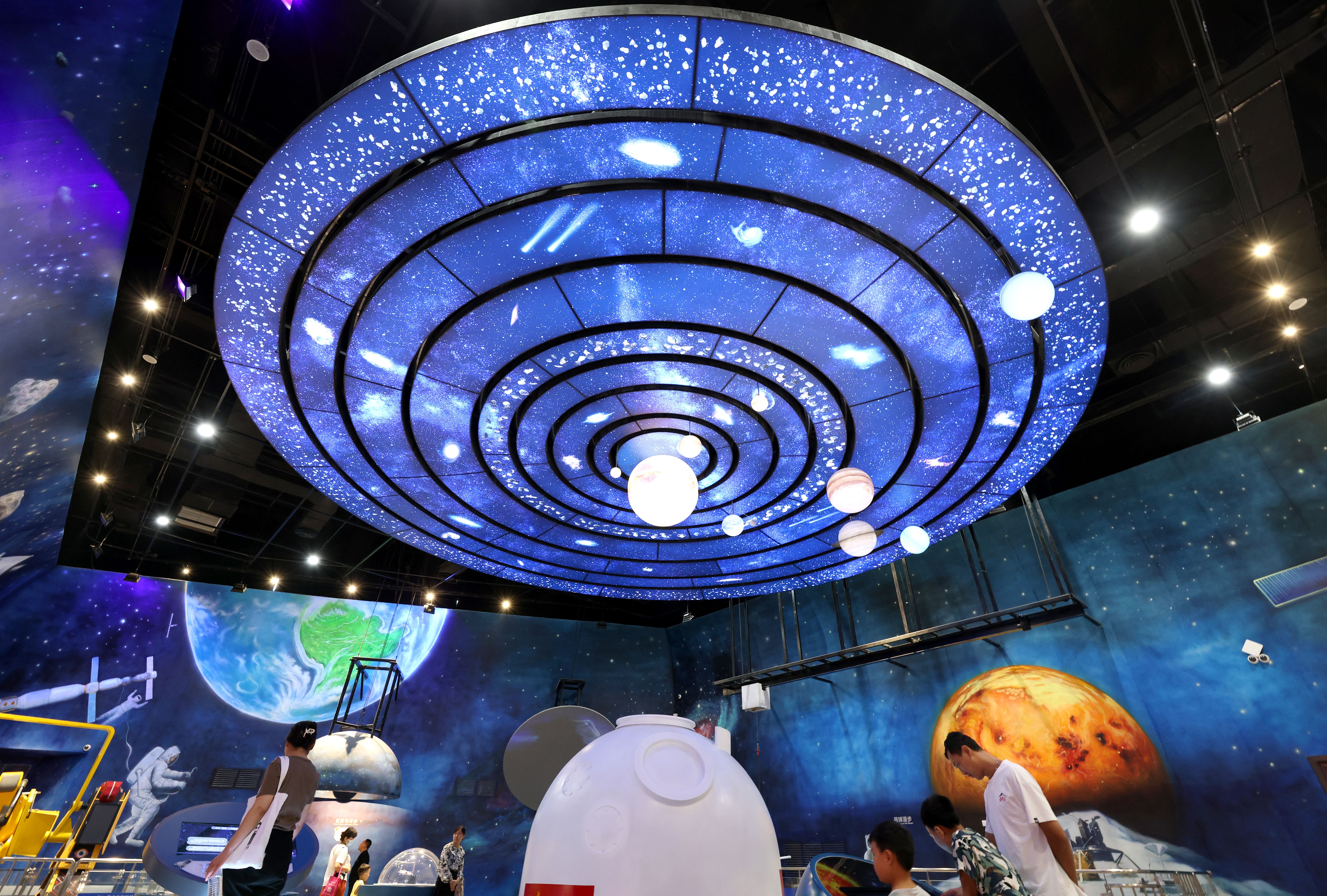 9月17日,人们在山东省枣庄市科技馆“宇宙探索”厅感受科技魅力。9月17日至23日,2023年全国科普日活动在各地集中开展,今年的主题为“提升全民科学素质,助力科技自立自强”。 新华社发(孙中喆 摄)