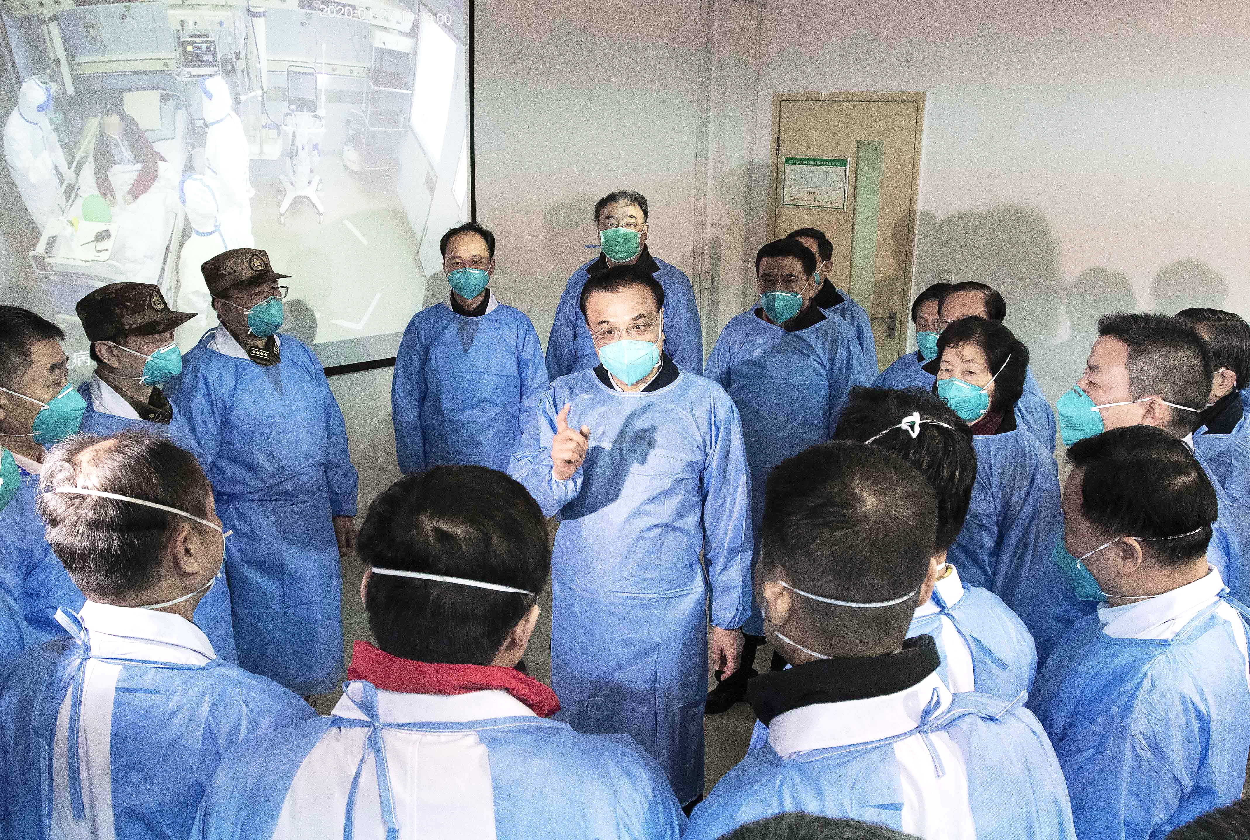 图12:2020年1月27日,李克强同志赴湖北省武汉市考察指导疫情防控工作,代表党中央、国务院慰问疫情防控一线的医务人员。 (新华社记者 李涛 摄)