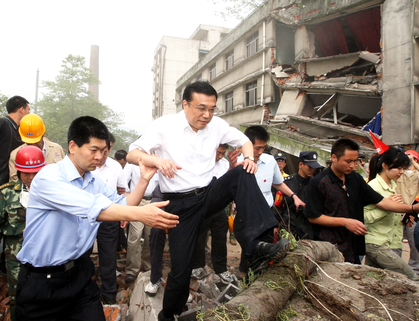 图⑧:2008年5月19日,李克强同志在四川地震灾区察看灾情。 (新华社记者 兰红光 摄)