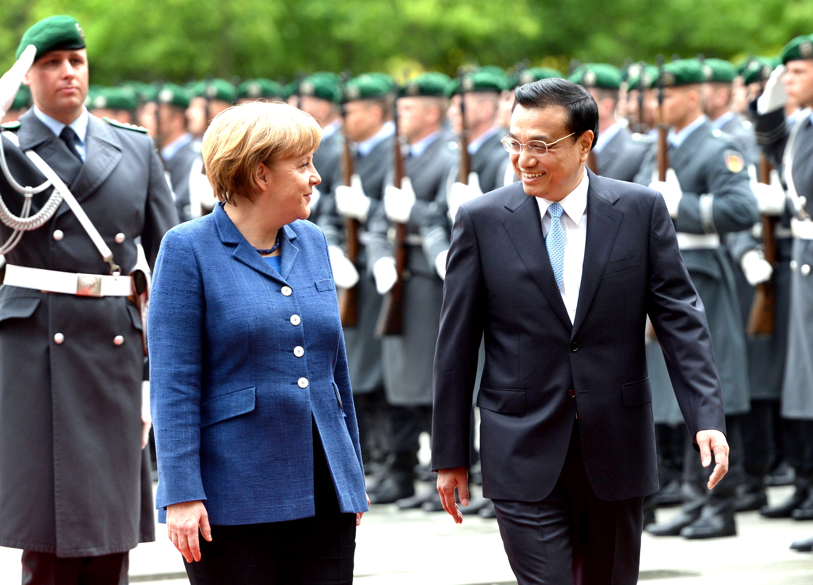 图⑥:2013年5月26日,李克强同志在柏林出席德国总理默克尔举行的欢迎仪式。 (新华社记者 马占成 摄)