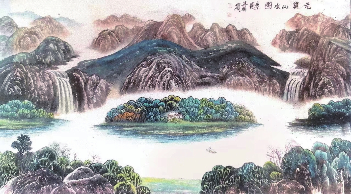 吴祯岚先生功底深厚,“师古而不泥古,具有清越、华滋、温馨、磅礴的时代气息。”在他的笔下,山水松柏、草木幽谷、小桥流水,风趣别致,令人回味无穷。连绵不断的山峦云雾笼罩时起时伏,那耸峙的峰峦、险峻的崖壁简直就是一把锋利的宝剑,直插蓝天;千峰万嶂、重重叠叠,耸入云端,宛如万幅壮锦,仿佛天外来客;那高矮参差,前拥后簇的山峰时笑时眠。水时而潺潺细流,时而飞流直下,时而汹涌澎湃,掀起万丈海浪;近处树木苍阔葱茏,荡气回肠;远处叠峰错落,气势磅礴;那深邃迷离的幽谷,给人空蒙冷峻之感;小桥流水人家,气韵充盈、飘逸洒脱,给人以欢快愉悦之感。