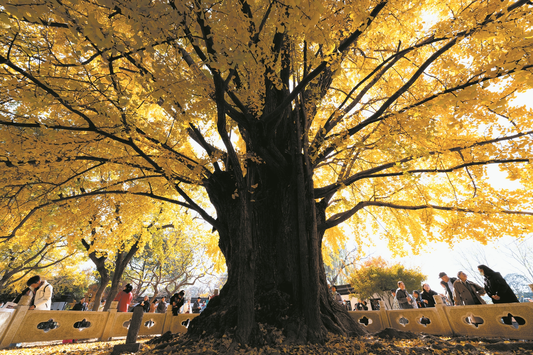 这棵古老的银杏树迄今1200多年,目前进入最佳观赏期。