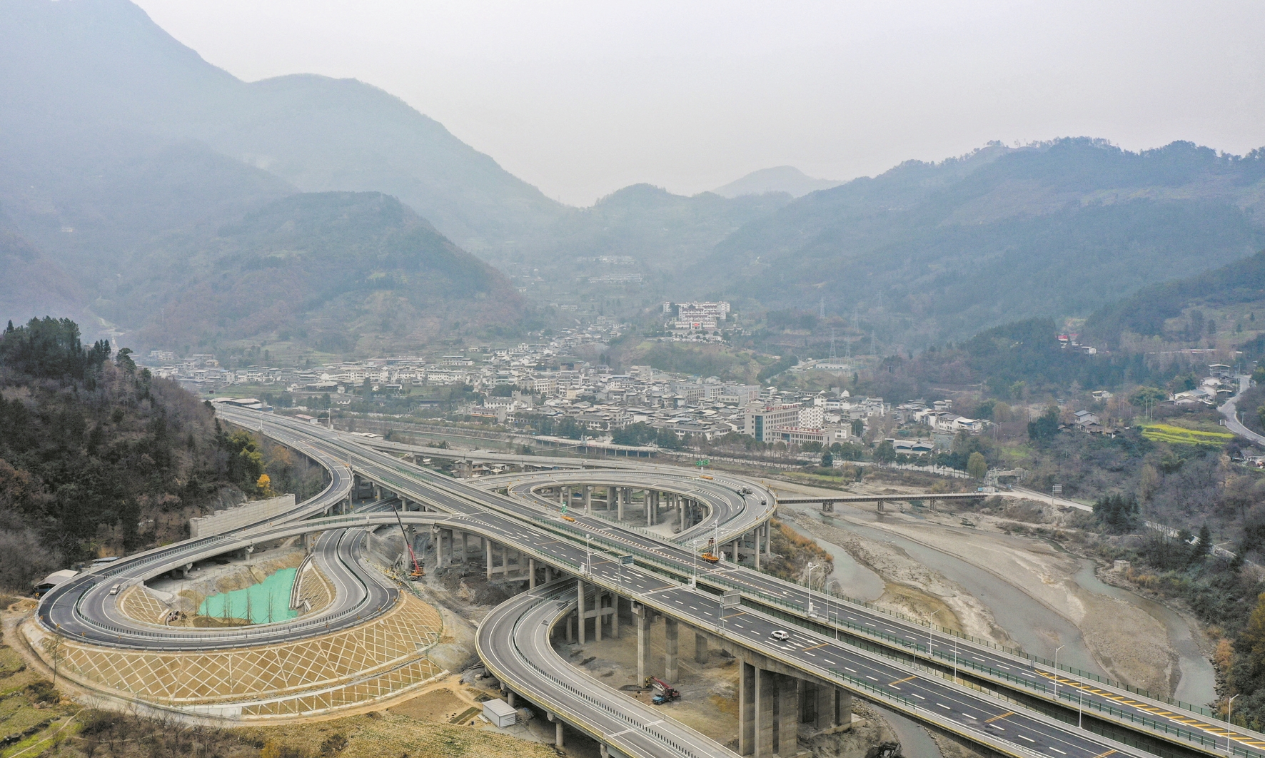 12月28日拍摄的四川省绵阳市平武县境内的九绵高速(无人机照片)。