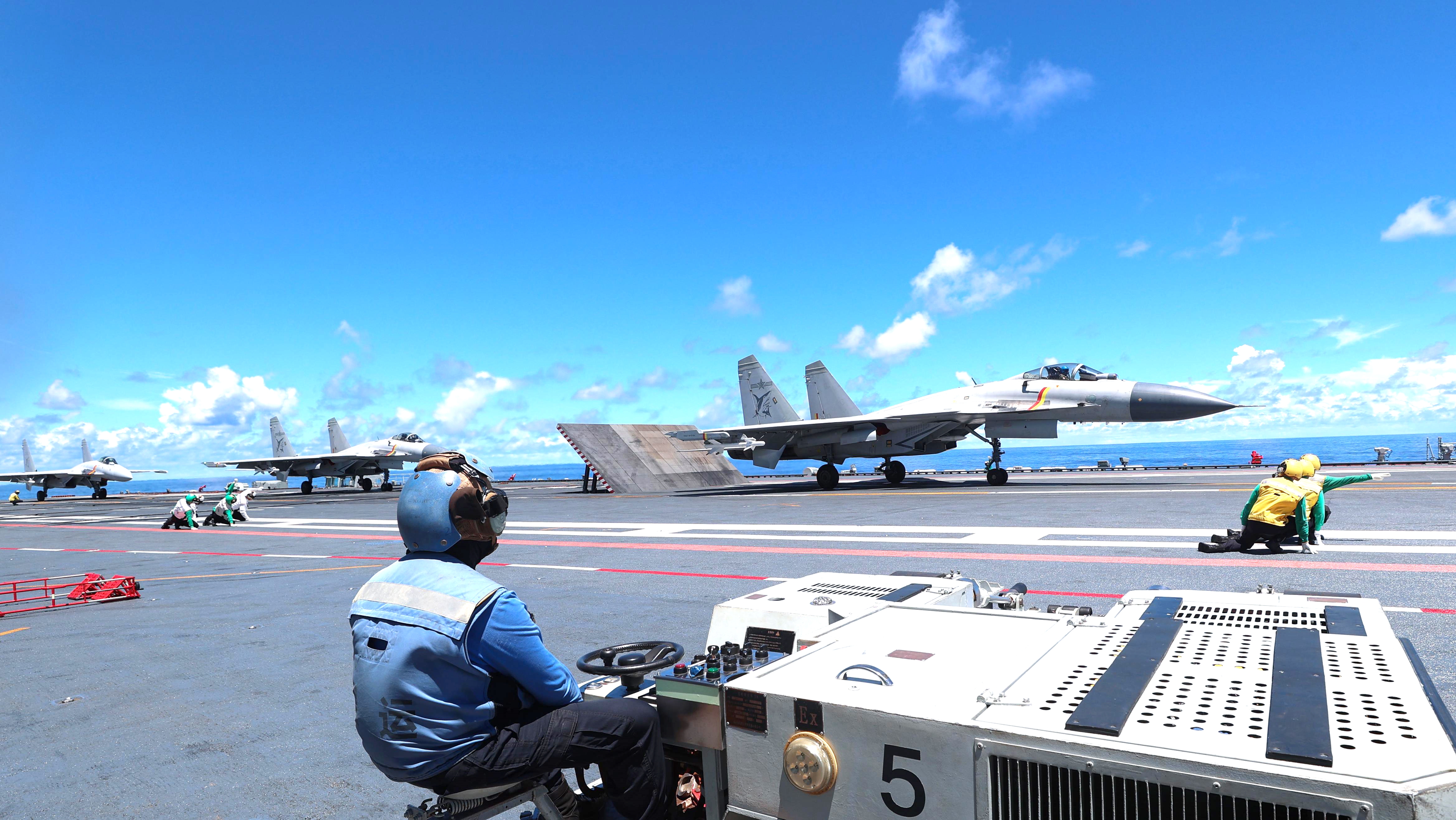 2025年6月30日,这是山东舰接续放飞舰载战斗机。