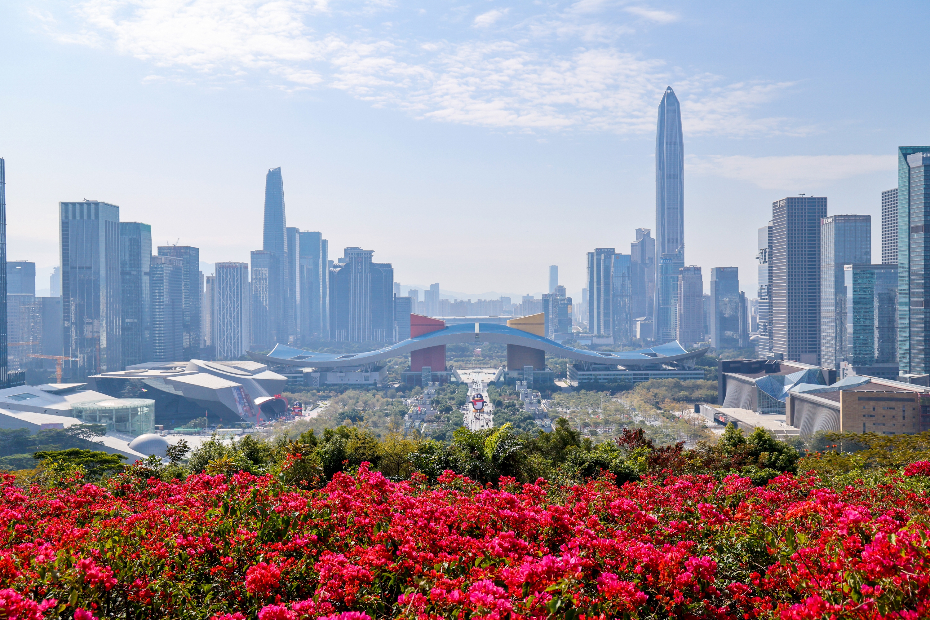 从深圳莲花山山顶俯瞰城市中轴线(2025年1月29日摄)。 (新华社记者 梁旭 摄)