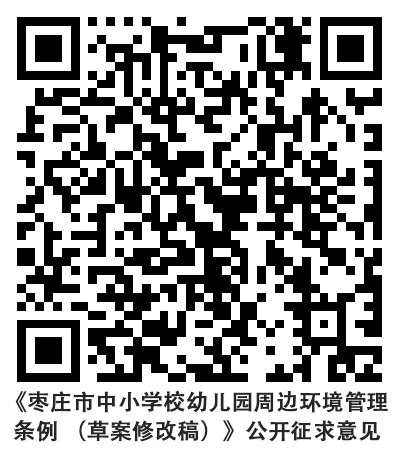 为了加强中小学校幼儿园周边环境管理,维护正常的教育教学秩序,保障学生、教职工的合法权益,市人民政府起草了《枣庄市中小学校幼儿园周边环境管理条例(草案)》(以下简称《条例(草案)》),并于2025年8月25日提请市十七届人大常委会第三十一次会议进行了一审审议。一审后,市人大常委会法工委根据常委会审议意见组织了联合修改,形成了《条例(草案修改稿)》。为推进民主立法、科学立法,提高立法质量,现将《条例(草案修改稿)》通过枣庄人大网(http://www.zzsrd.gov.cn/)“立法工作”版块公布,向社会各界征求意见和建议。您可以通过登录枣庄人大网、枣庄人大微信公众号或者扫描下方立法民意直通车二维码提出意见和建议,也可以通过来信来函、发送电子邮件或传真等方式提出,请注明建议人姓名(名称)以及联系方式。征求意见截止时间为2025年10月10日。