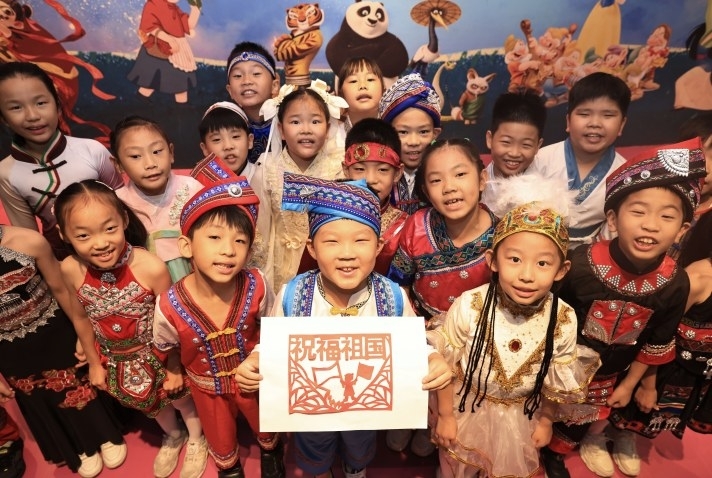 上图:9月25日,在湖北省武汉市,未来实验小学学生开展迎国庆主题活动。