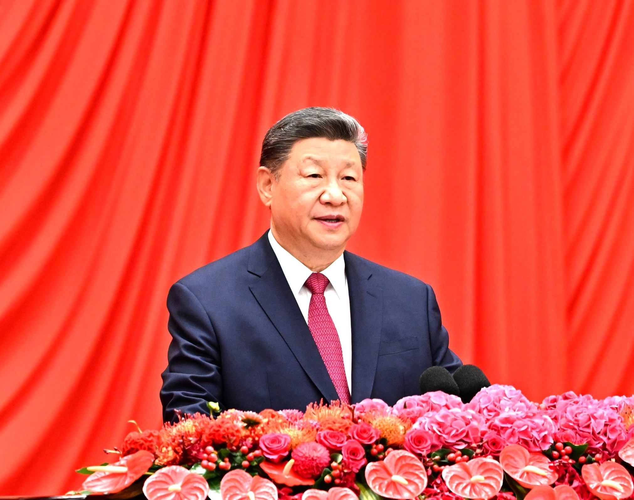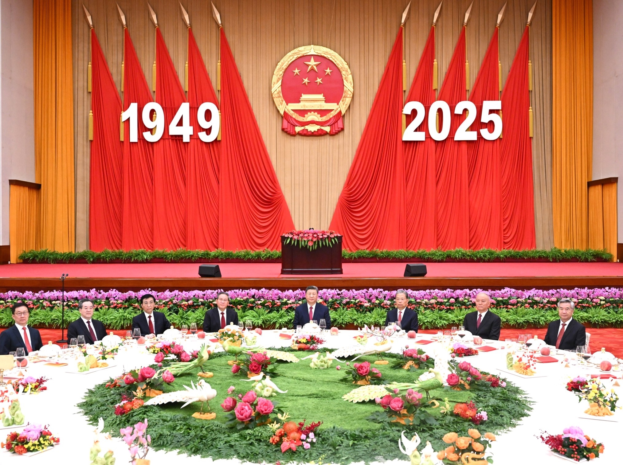 9月30日晚,庆祝中华人民共和国成立76周年招待会在北京人民大会堂举行。中共中央总书记、国家主席、中央军委主席习近平出席招待会并发表重要讲话。 (新华社记者 燕雁 摄)