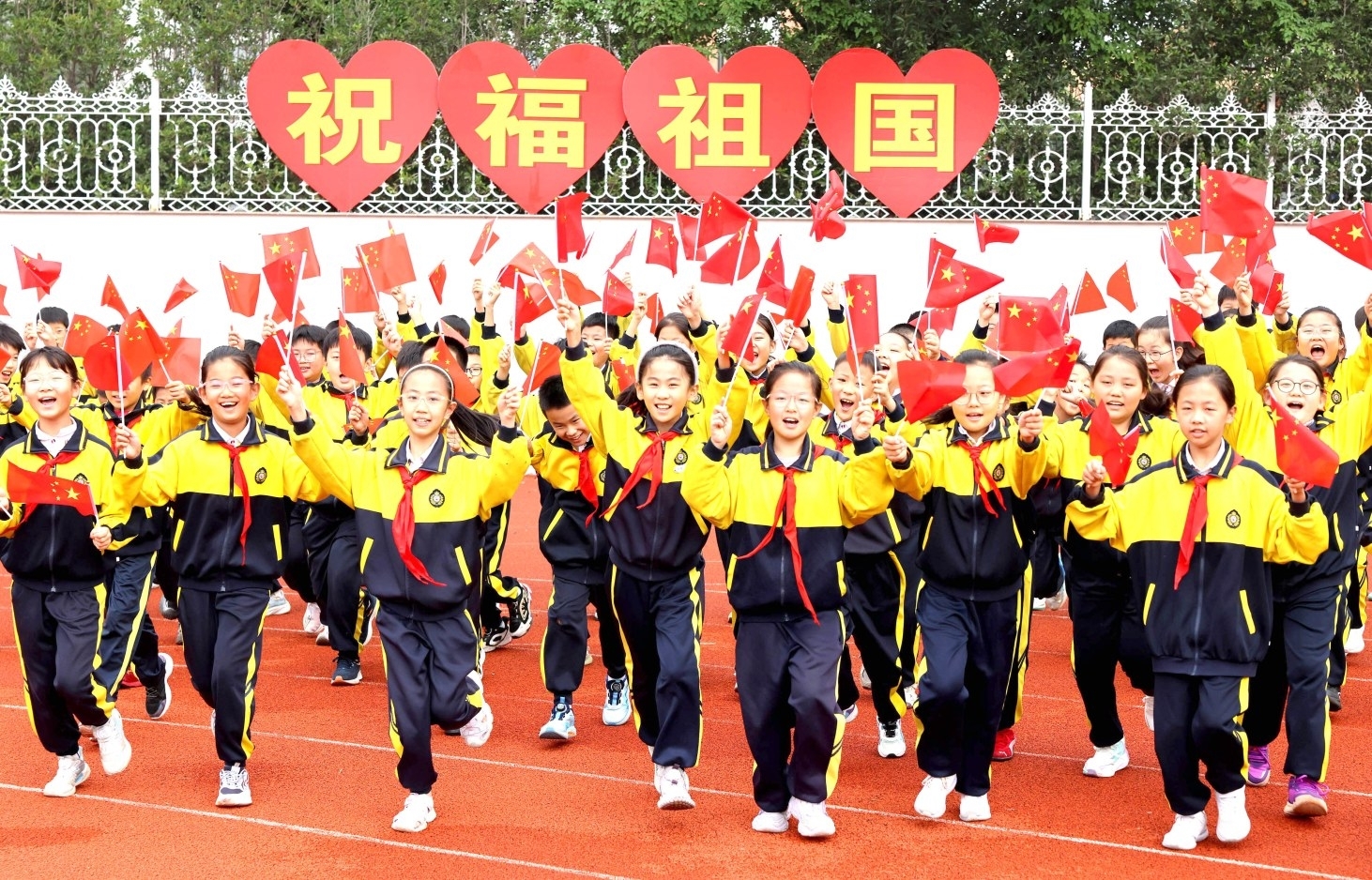 9月29日,市中区文化路小学开展“祝福祖国 喜迎国庆”主题教育,学生们通过多种形式抒发爱国情怀,激发奋斗精神,喜迎国庆佳节。 (吉喆 韩建瑞 摄)