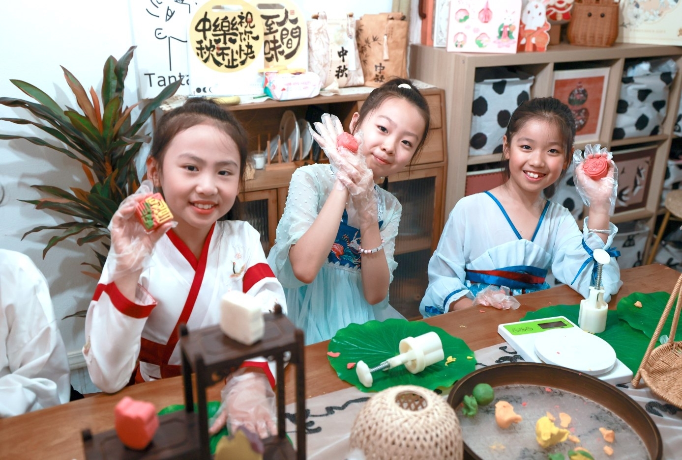9月30日,薛城区双语实验小学在一月饼生产工坊内开展“巧手做月饼 喜迎中秋节”活动,让学生感受传统文化的魅力,喜迎中秋佳节。 (记者 王龙飞 摄)