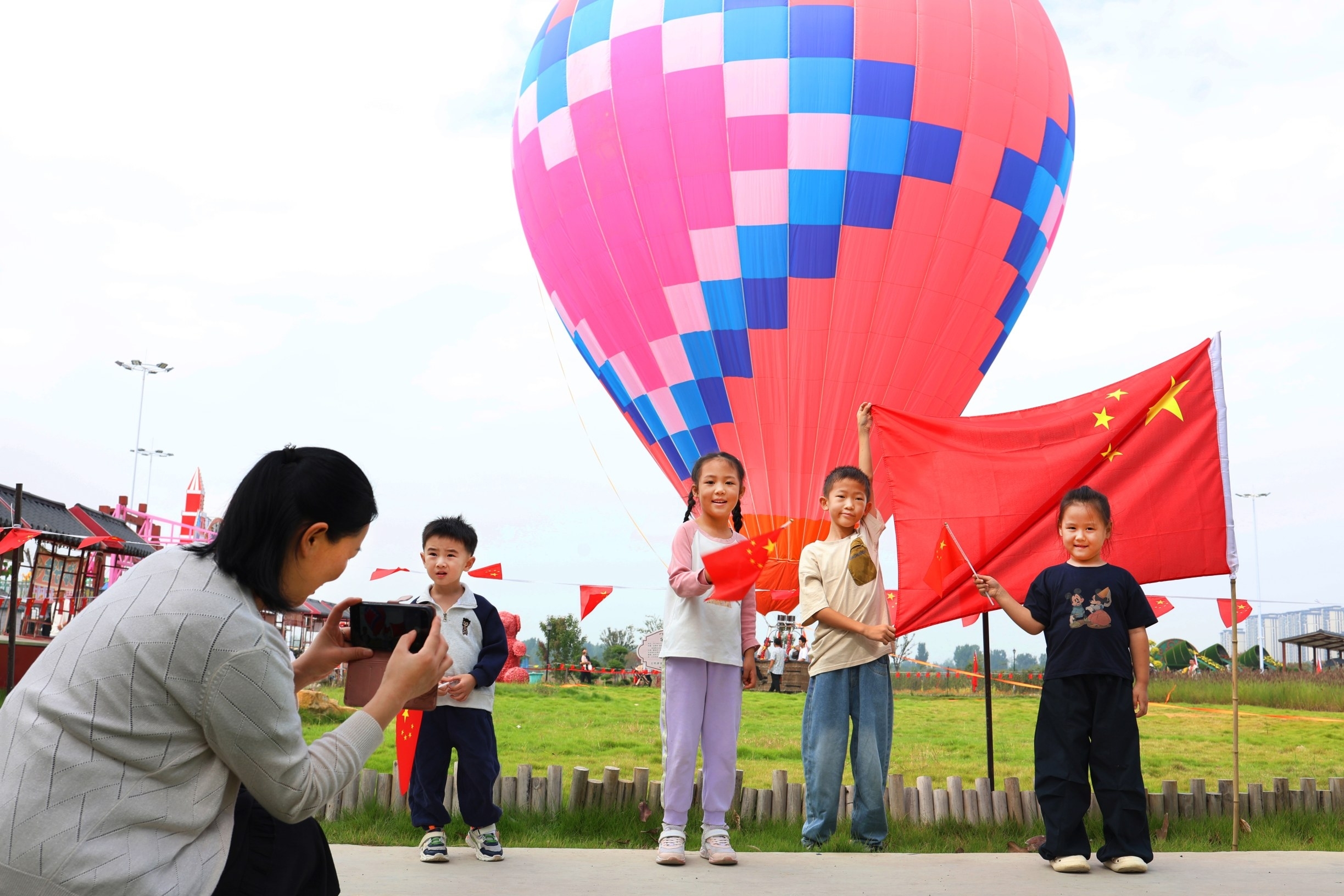 国庆节当天,我市群众纷纷走出户外,以丰富多彩的形式,祝福祖国,欢度国庆。 (记者 刘明 摄)