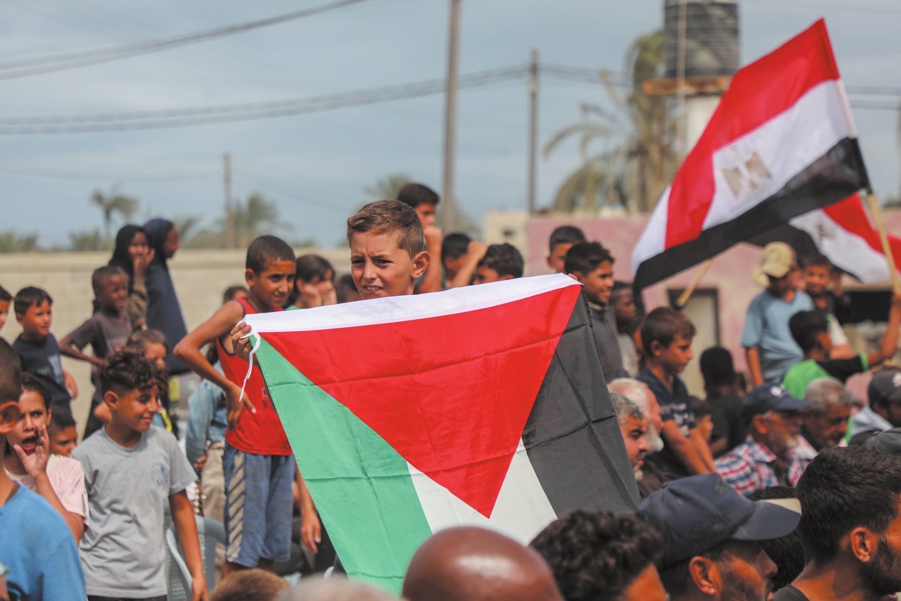 10月9日,在加沙地带中部代尔拜拉赫,巴勒斯坦民众在获悉加沙停火协议的消息后庆祝。