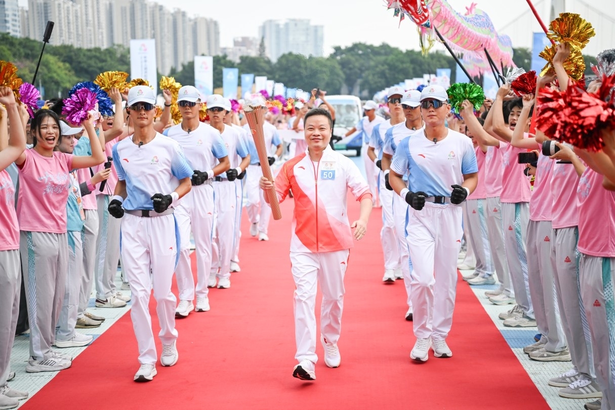 新华社深圳11月2日电 (记者 王浩明 孙飞)第十五届全国运动会火炬传递2日在香港、澳门、广州、深圳四个城市同步举行,这是全运会历史上首次跨境火炬传递,也是全运会火炬首次在香港和澳门传递。