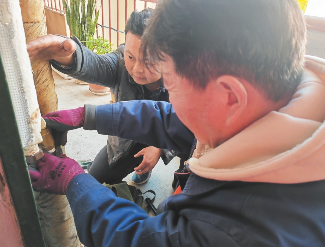 11月3日,市中区文化四村热力管道出现破损漏水,接到热线电话后,热力公司工作人员立即进行维修,全力做好今冬供热准备工作,保障市民安全用暖。 (记者 岳娜 摄)