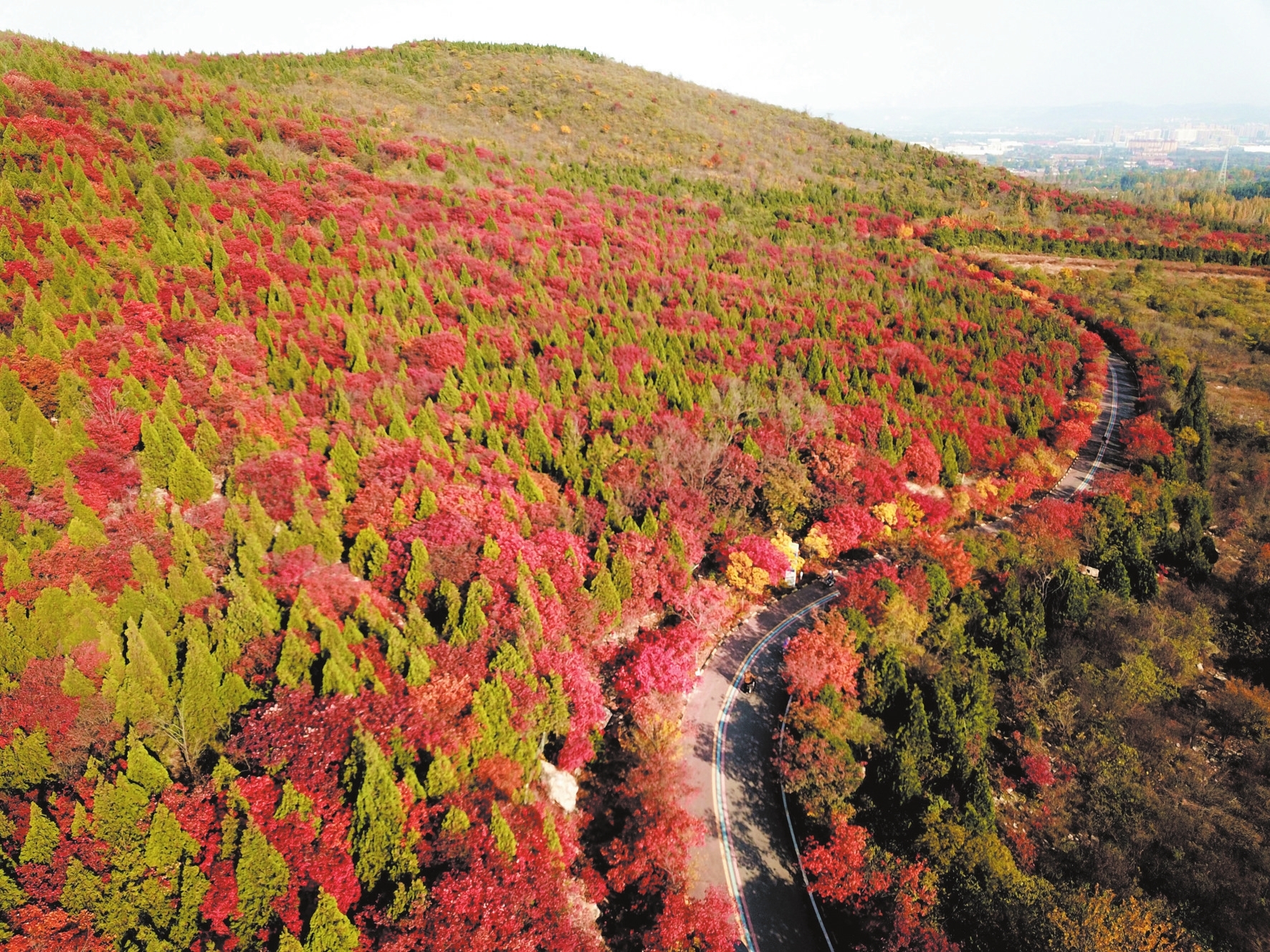 秋末冬初,市中区牛郎山漫山红叶进入最佳观赏期。层峦叠嶂间,红叶似火,将山体染成红色海洋,景致壮美。独特秋景吸引大批游客慕名前来打卡,定格这份秋日美景。