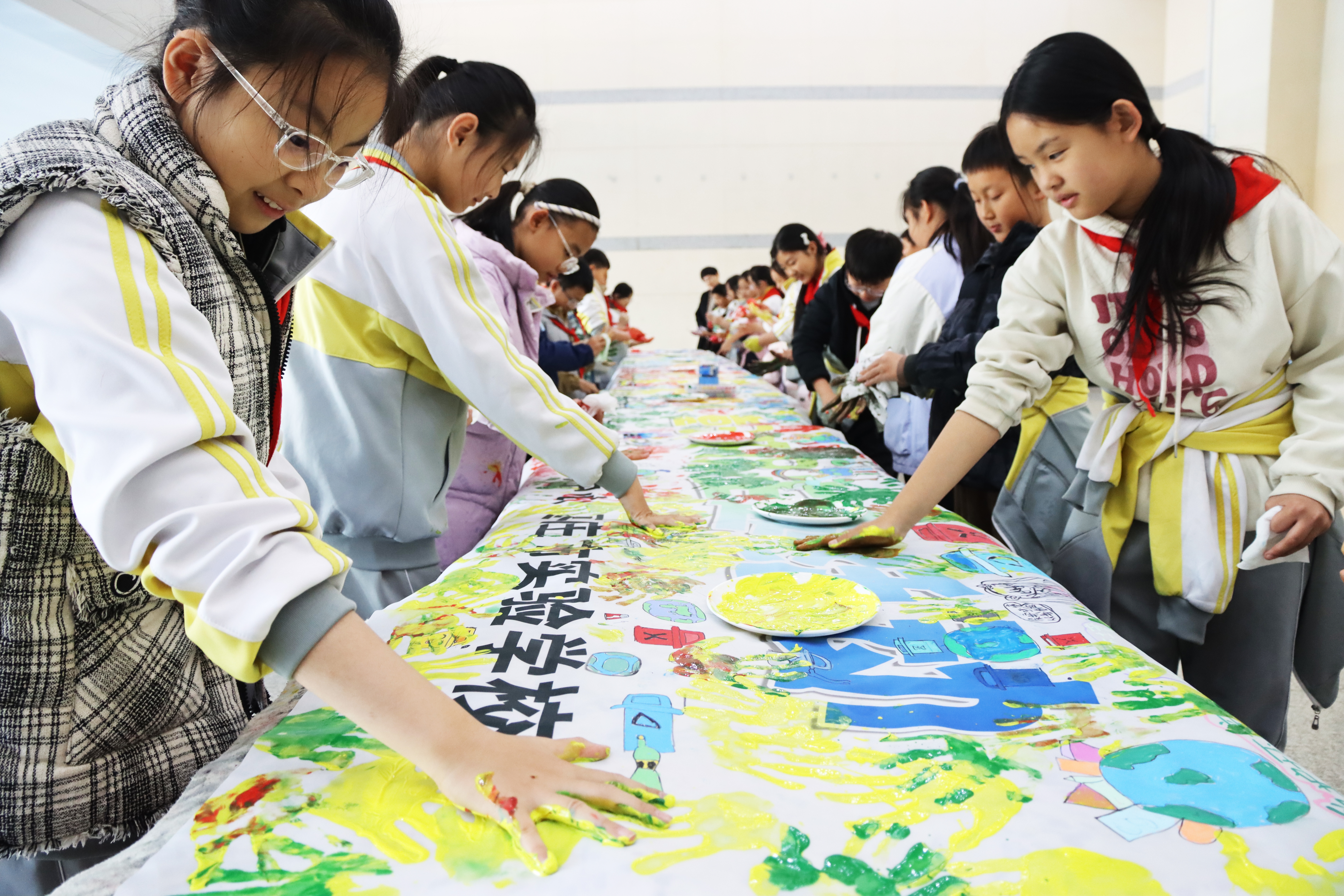 11月18日,世界儿童日来临之际,由市妇联、市关工委、市教育局、市生态环境局、市生态环境监测中心主办,市实验学校承办的“枣”点行动 “童”护气候——2025年枣庄市世界儿童日环保主题活动举办。活动中,市实验学校师生代表参观市生态环境局实验室,观看了土壤水分自动测定仪、噪声监测仪等环境监测设备和演示实验。在“油彩印担当”环节,孩子们蘸取油彩,在主题展板上按下小手印,留下践行绿色承诺的生动见证。
