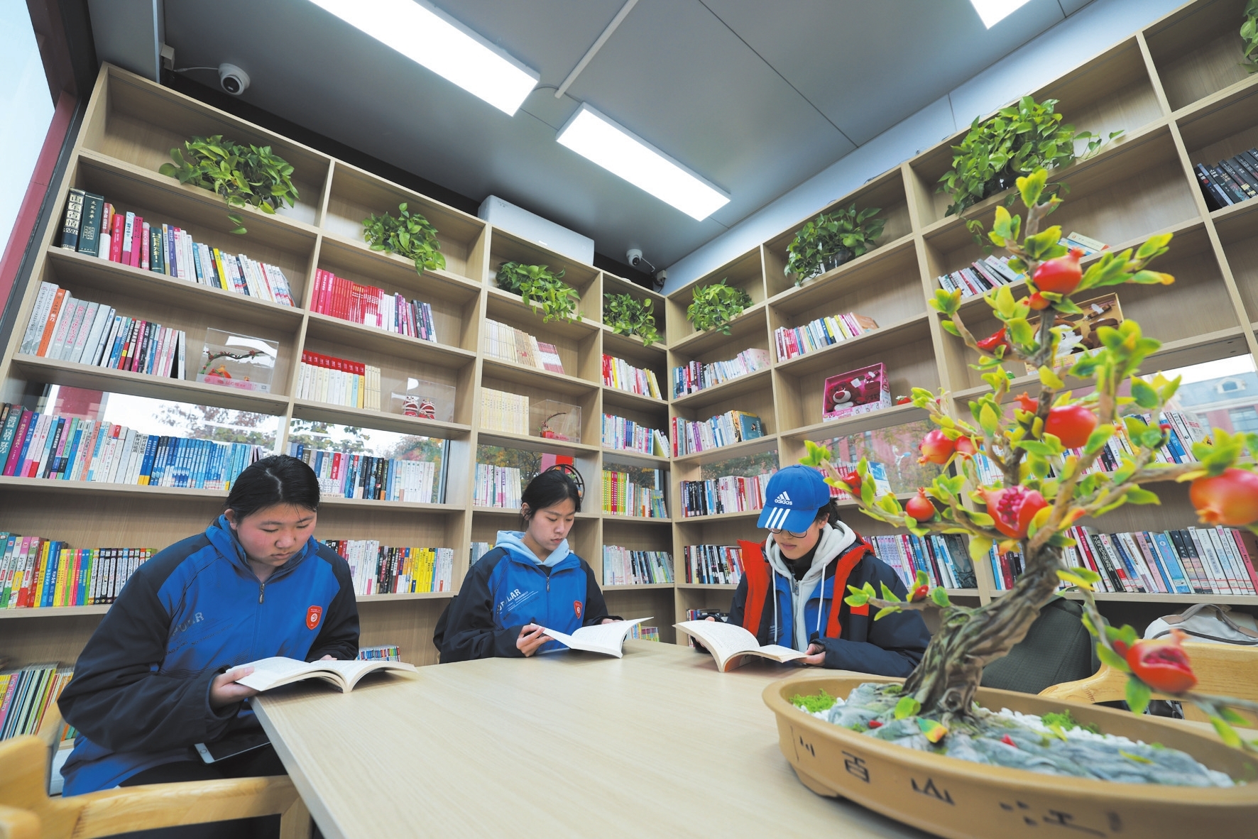 而南站台则被打造为“铸牢中华民族共同体意识”主题宣传阵地。配备的1000多册图书,让市民在出行间隙就能感知中华优秀传统文化。这里设置了休息区与阅读区,也方便了乘客、学生及家长、户外劳动者在此休憩、读书。“冬日已至,经过一天的学习,等车时难免感到疲惫与寒意。而在这里,有舒适的沙发、免费的暖气和有趣的图书,让我们能放松身心。”实验高中高一学生庞锦睿和孙睿说。