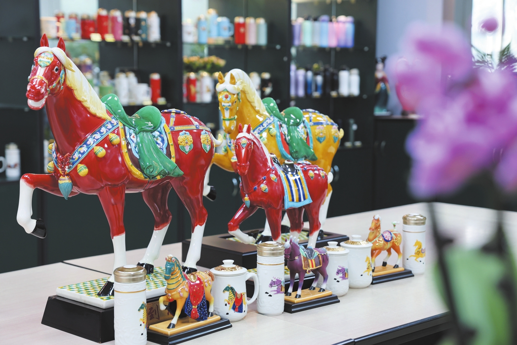 1月15日,峄城区一家陶瓷公司展示其生产的马造型工艺品。