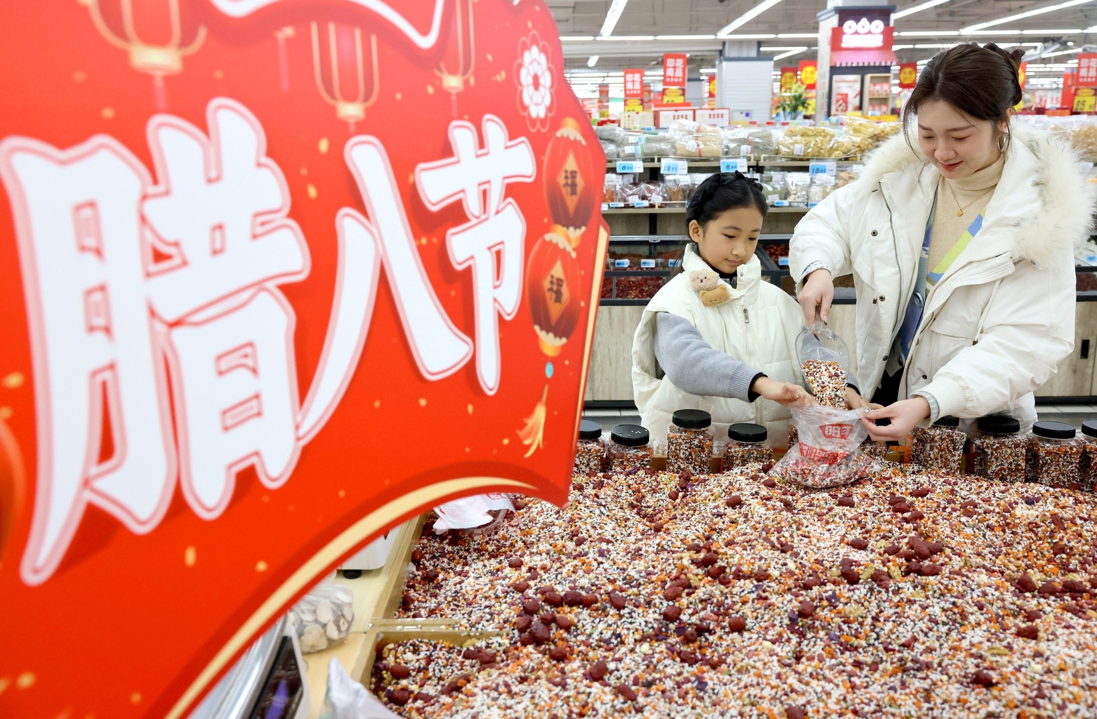 左图:1月24日,市民在选购熬制腊八粥食材。