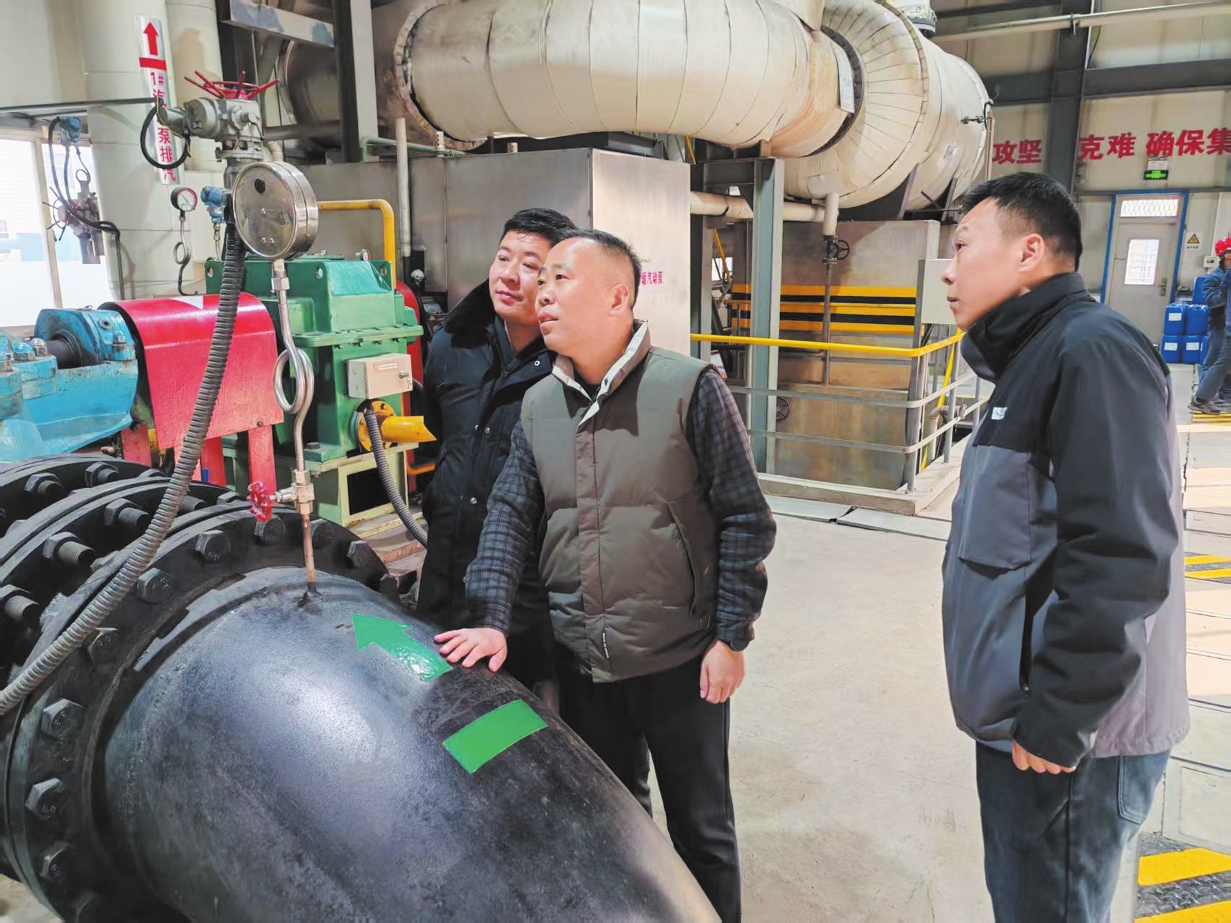 图为工作人员现场勘察设备运行情况。