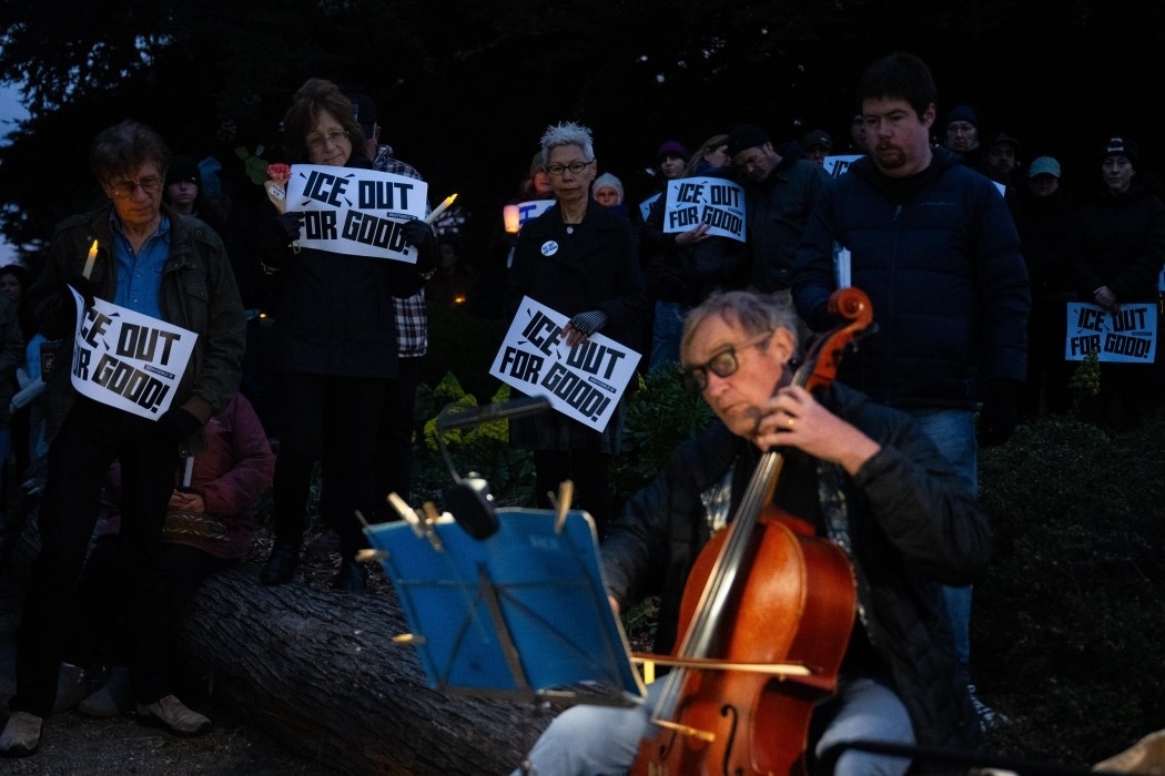 1月25日,在美国加利福尼亚州旧金山,人们为亚历克斯·普雷蒂举行烛光悼念活动。