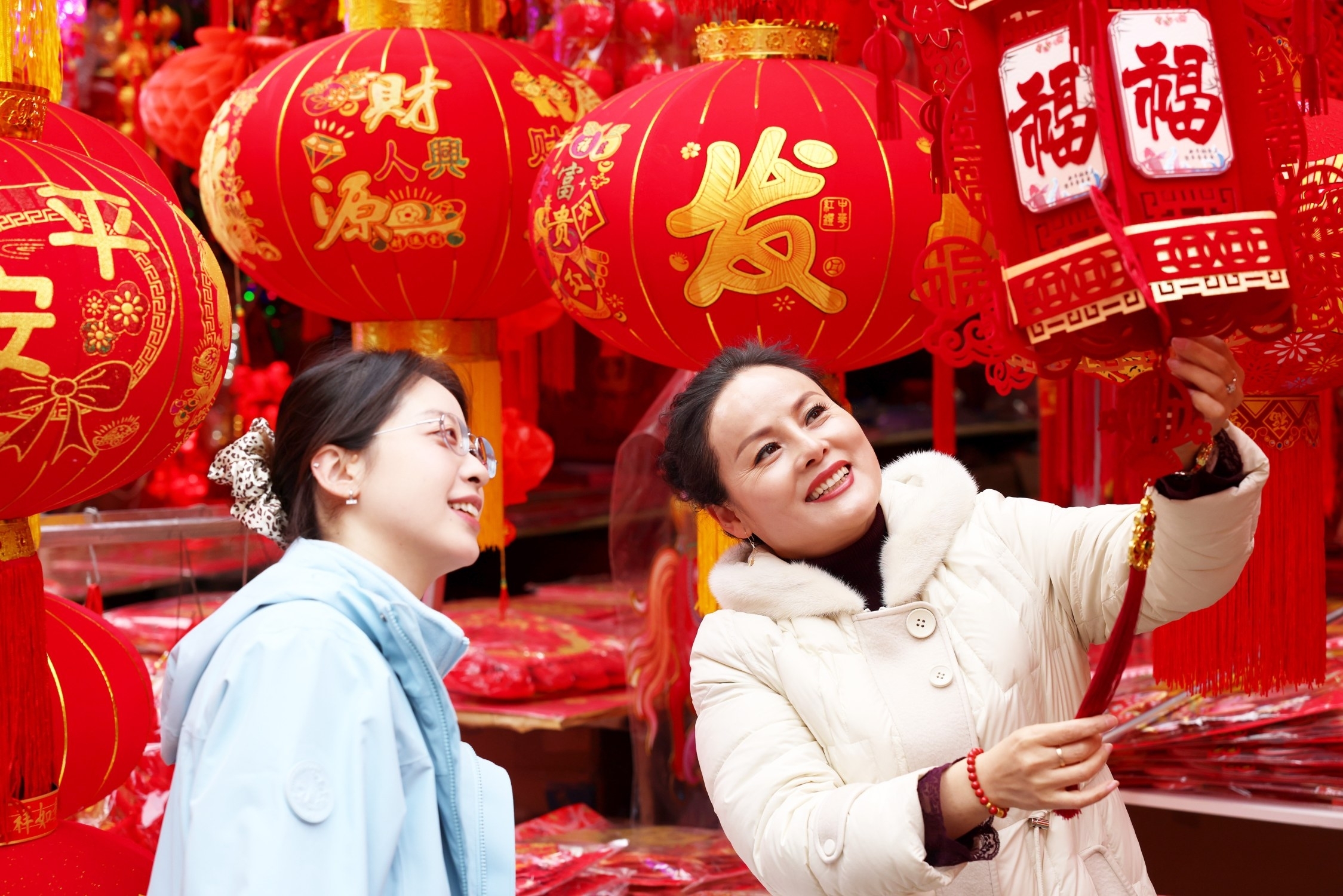 右图:2月12日,市民在市中区香港街选购新春饰品。