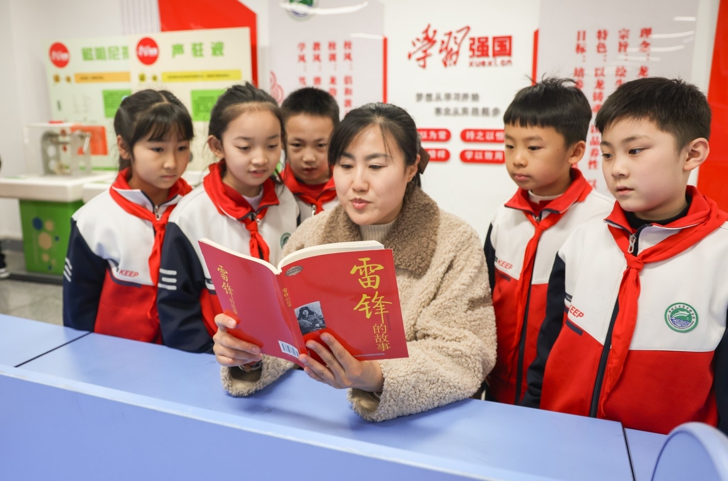 开学伊始,薛城区龙潭实验学校将“传承雷锋精神”融入开学第一课,依托校园读书角开展红色阅读活动。老师为学生讲述雷锋事迹,引导孩子们在阅读中感悟榜样力量,传承奉献精神。