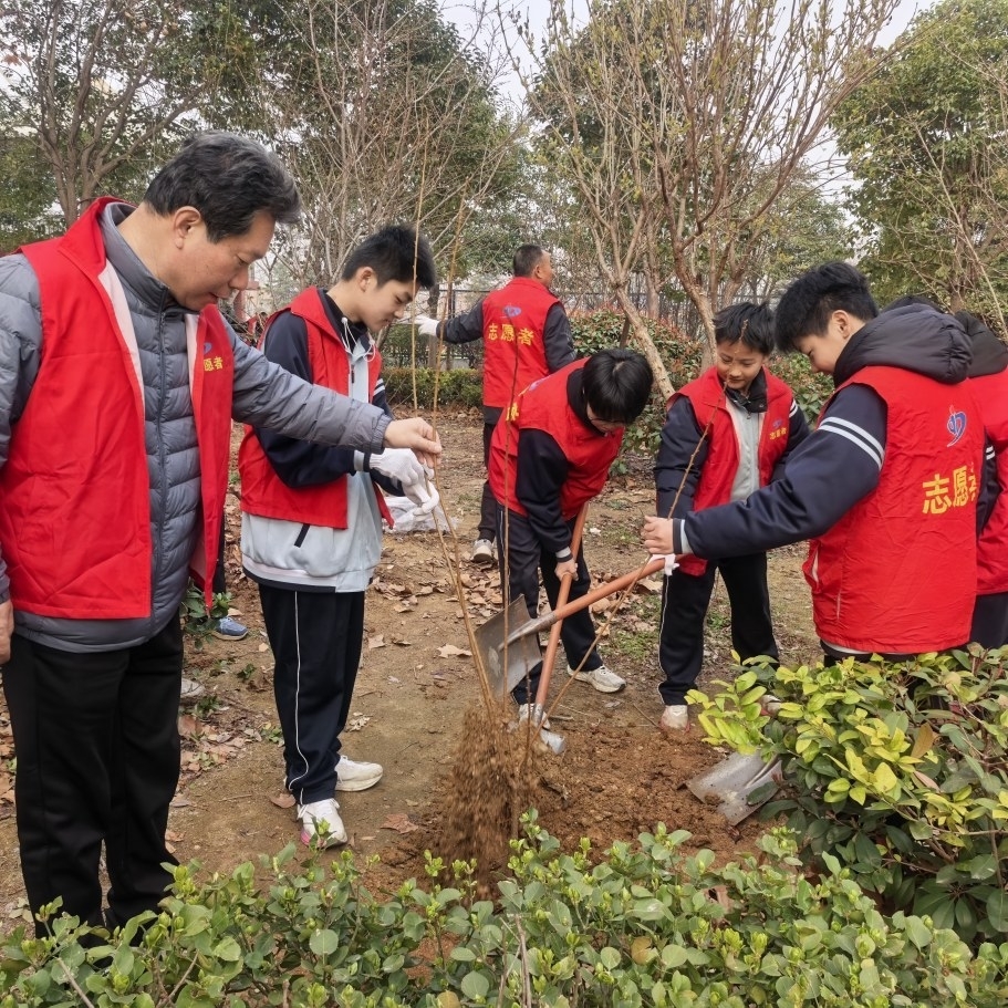 3月12日,市第二十九中学组织校部分党员、教师及学校阳光服务队志愿者,在校园内开展“植绿践初心,青春美校园”植树节志愿服务活动,以实际行动为校园增添绿色生机。活动现场,大家分工协作、默契配合,用劳动践行环保理念,用行动守护绿色家园。 (闫彤 孔伟 摄)