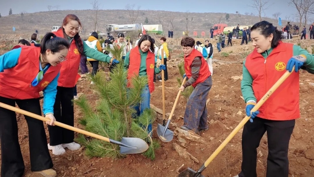 3月12日,市妇联联合山亭区妇联、市女企业家协会在山亭区开展市“巾帼悦动展风采 增绿添彩建新功”义务植树活动,来自各行各业女性代表100余人分工协作,为春日大地增添了一抹生机勃勃的绿意。 (记者 董艳 摄)