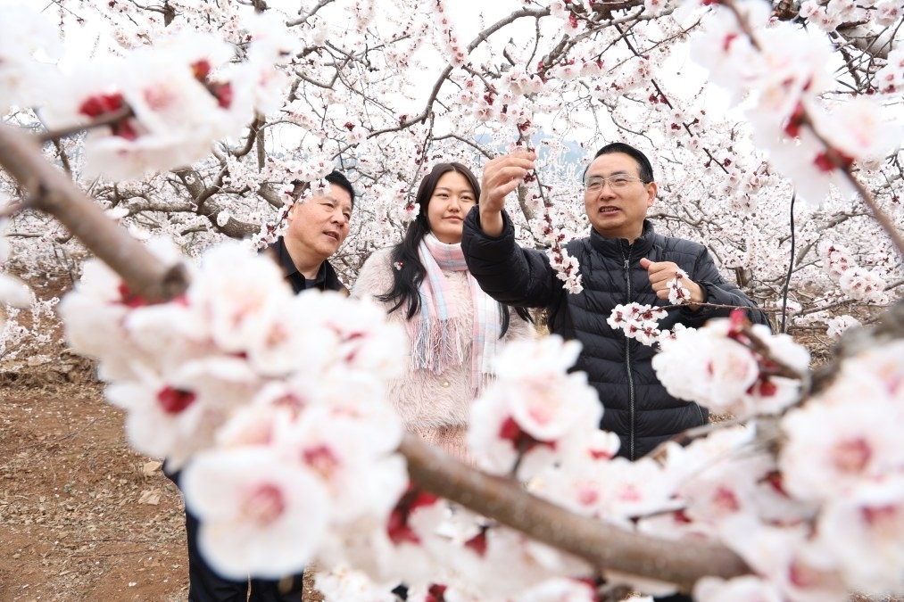 3月16日,山亭区政协委员在城头镇调研助推文旅产业高质量发展暨乡村赏花一日游精品线路,并在满牛村杏花园向村民现场传授科学授粉技术。