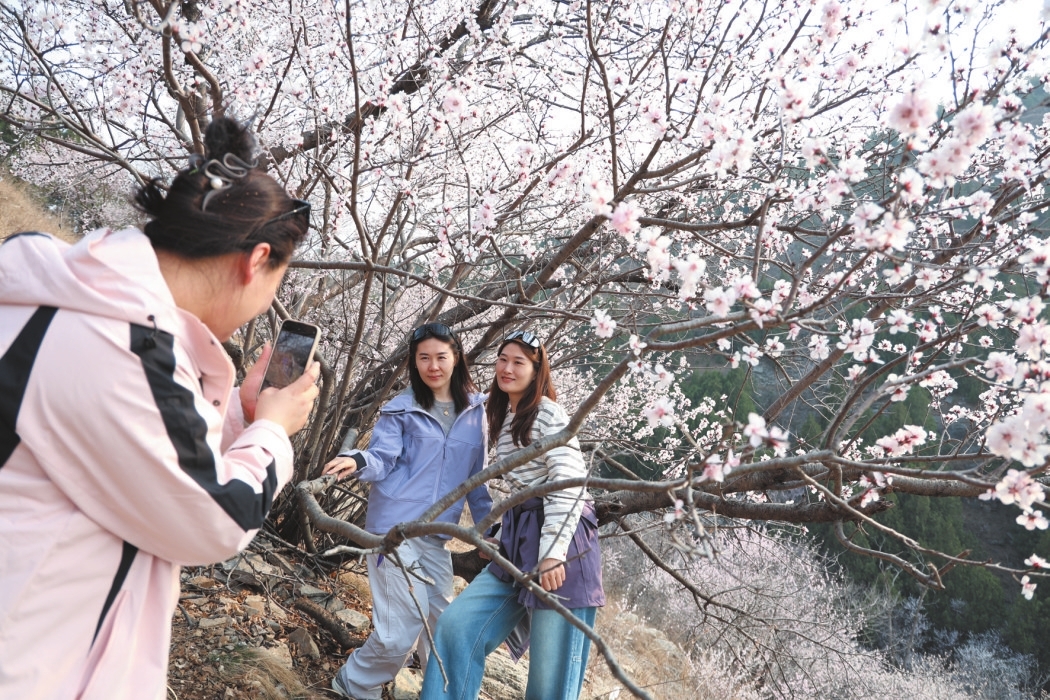 连日来,随着气温回暖,山亭区凫城镇西滴水村南的山坡上,漫山遍野的山桃花竞相绽放,粉白相间的花朵缀满枝头,将山野装点得如诗如画,吸引众多游客前往打卡拍照。