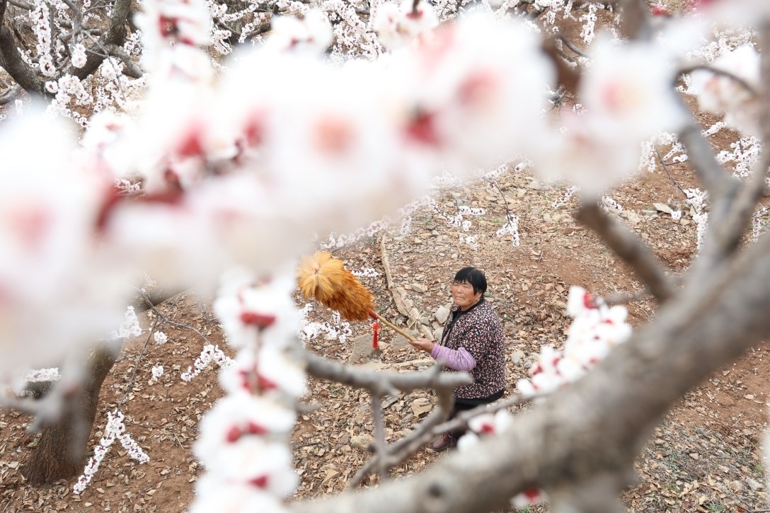 近日,山亭区城头镇的千亩杏花进入盛花期。果农们抢抓农时穿梭林间,手握授粉器悉心为每一朵杏花授粉,一幅人勤春早、“杏”福花开的春管画卷正徐徐展开。