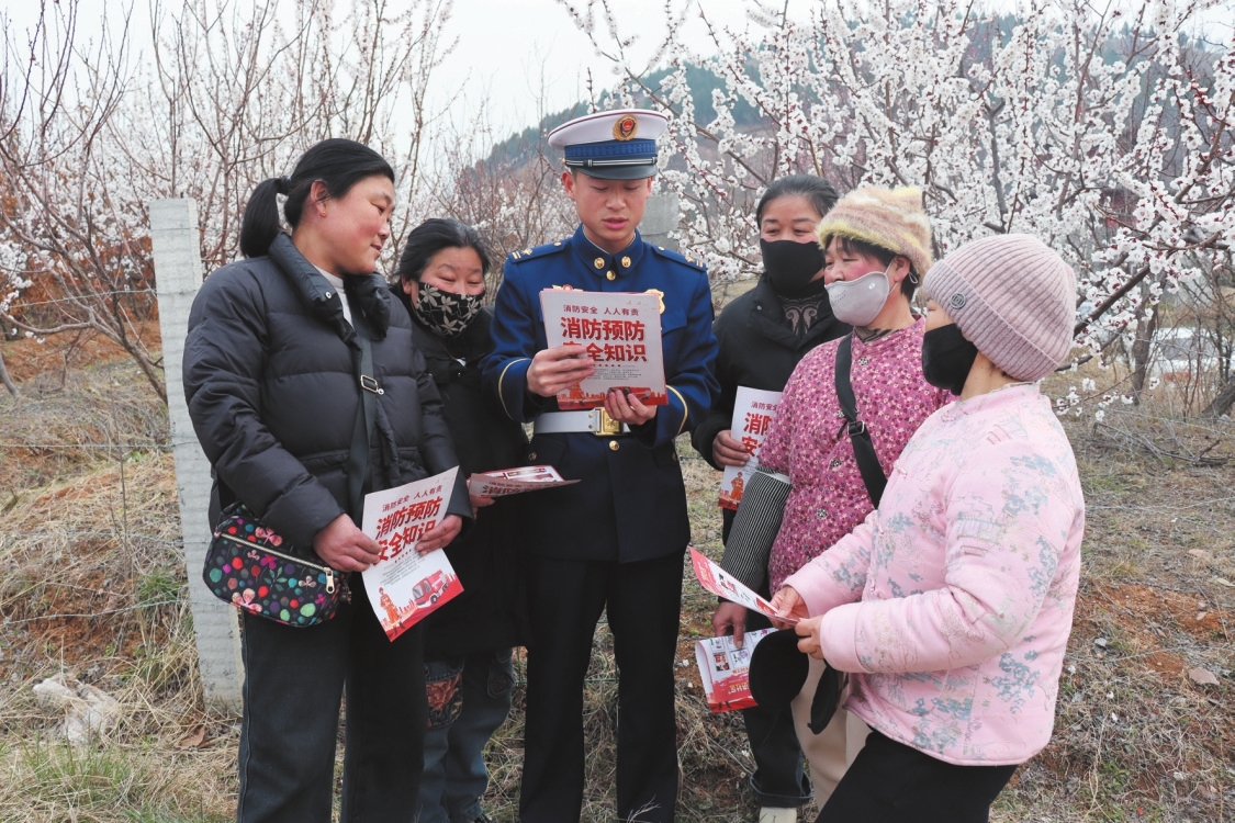 连日来,峄城区消防救援大队持续开展森林防灭火巡查和消防宣传活动。活动中,采取不间断巡护模式,对林区重点部位、关键路段进行全面排查,及时消除火灾隐患。同时,宣传人员走进林区周边村庄、景区等地,向群众讲解野外禁火、防火等知识,筑牢森林防火安全防线。 (记者 王龙飞 摄)