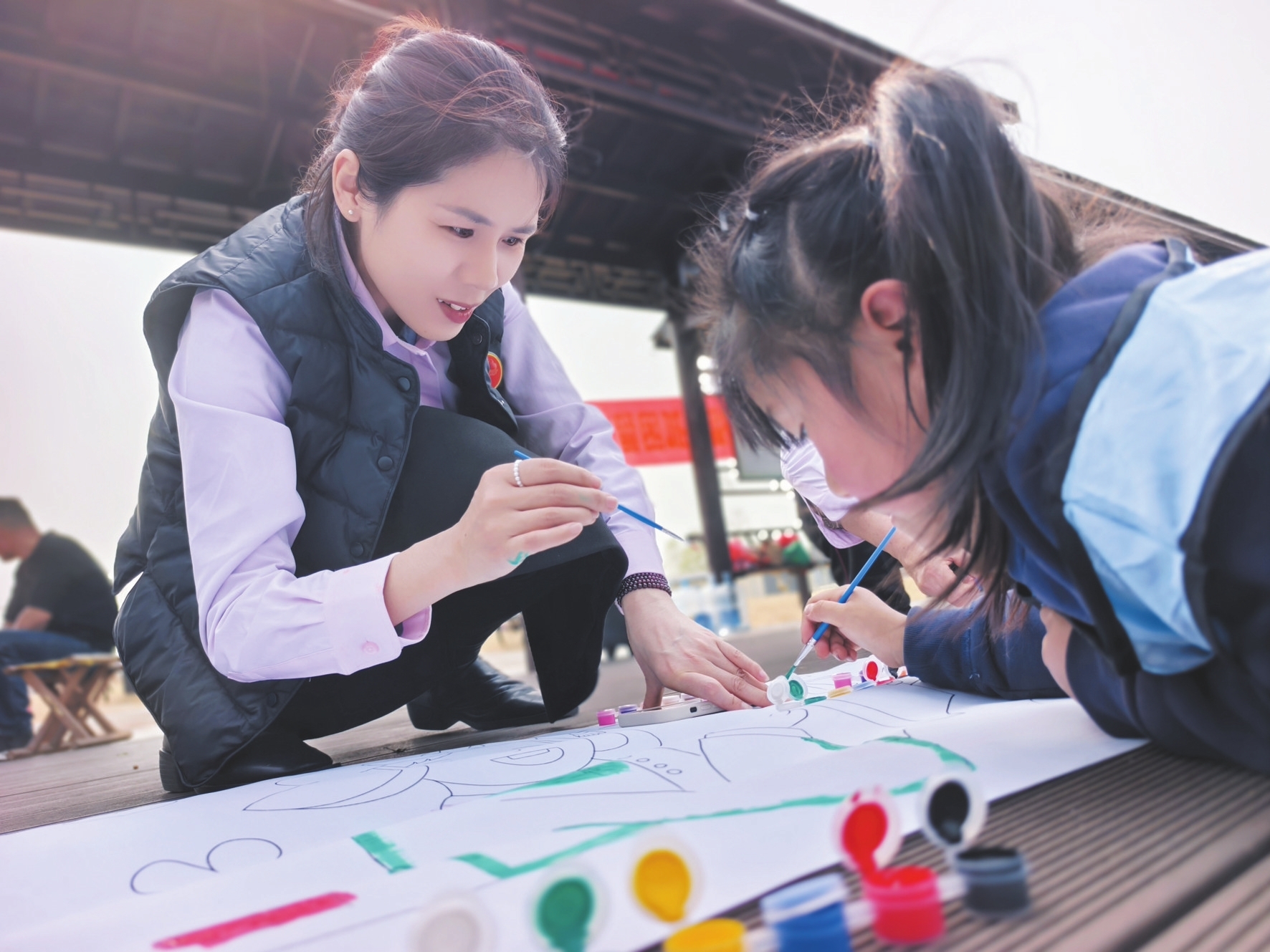 志愿者与榴花少年们欢聚一堂,以结对陪伴、画布涂色、非遗表演、爱心烧烤等多种形式,将温暖与关爱送到孩子身边。