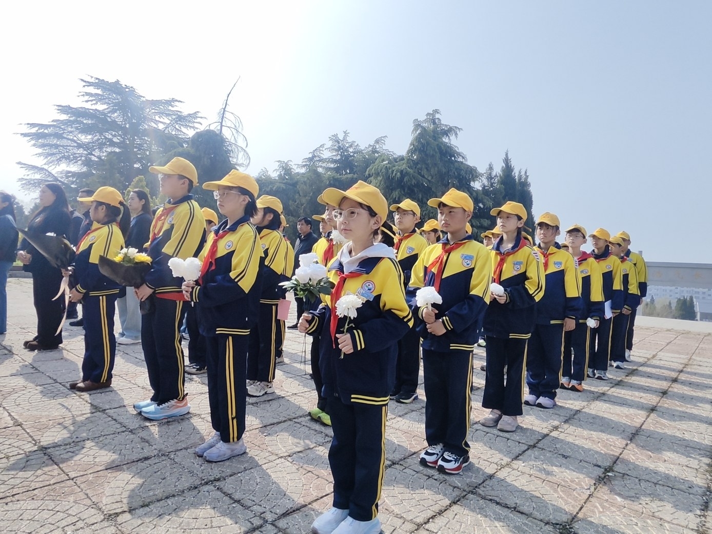 近日,峄城区实验小学组织党员教师、家委会成员及部分少先队员,走进阴平烈士陵园,开展清明祭扫革命先烈活动,缅怀英烈功绩,传承红色精神。 (李红 刘静 摄)