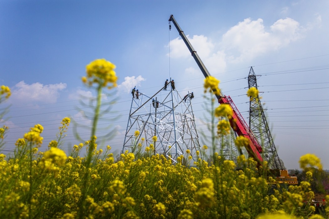 近日,在滕州市木石镇鲁南高科技化工园,国网山东枣庄供电公司工作人员正在快速推进110千伏墨润线项目建设进度。据了解,此次110千伏墨润线新建工程需新立杆塔32基,架设线路7.89公里,线路投运后将进一步提升化工园区重点企业供电可靠性,助力地方经济快发展。
