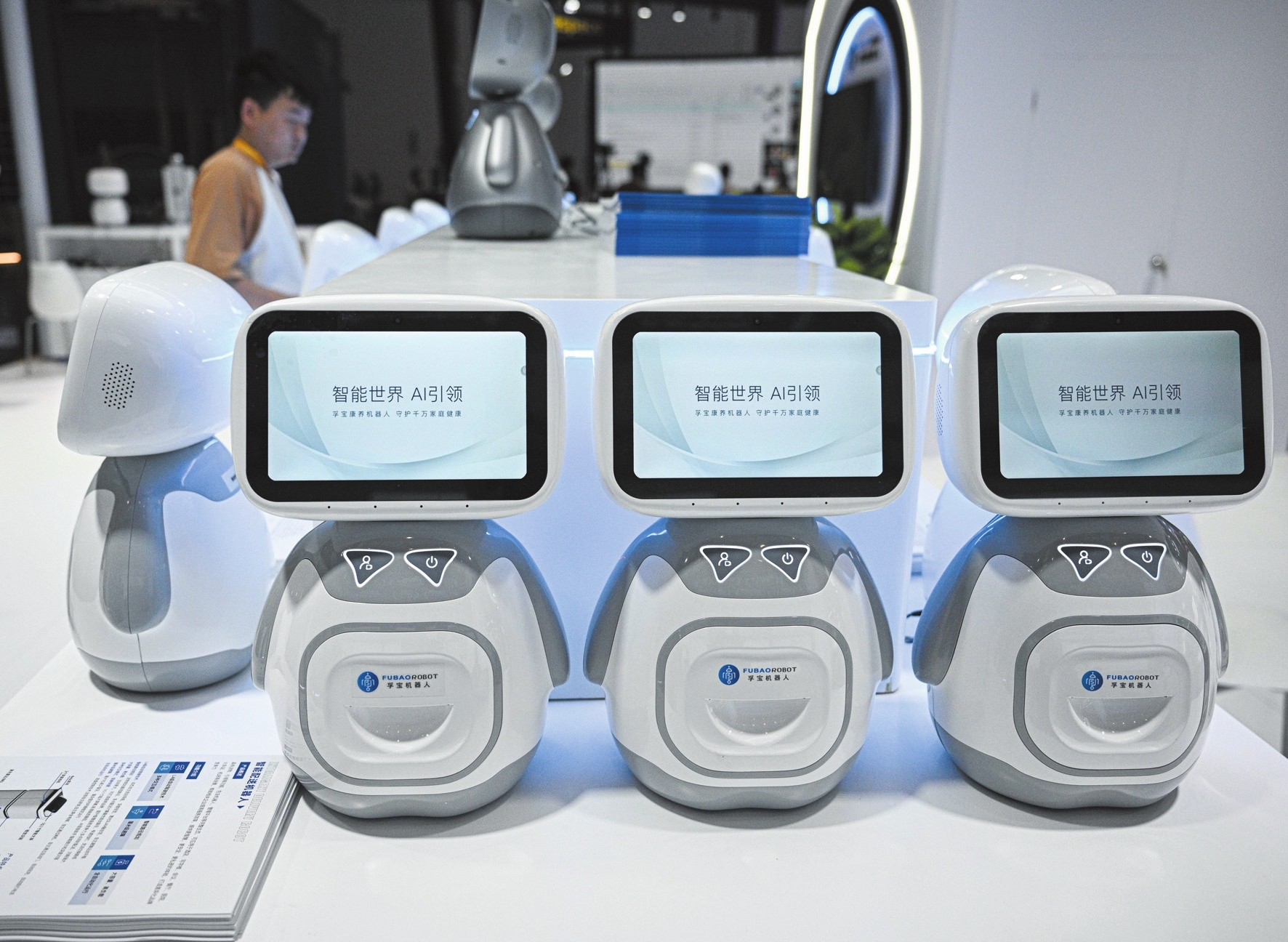 2026年4月11日在第六届消博会主会场拍摄的康养陪伴机器人。 (新华社记者 蒲晓旭 摄)