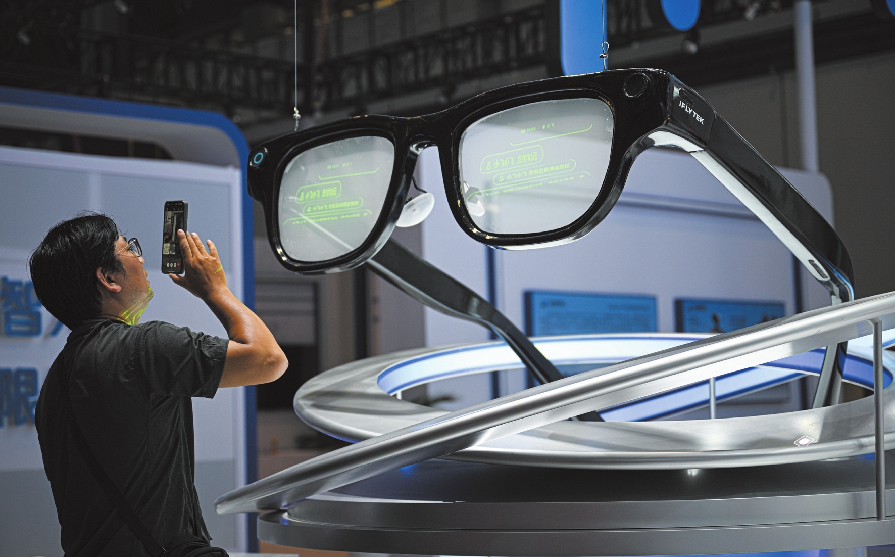 2026年4月10日在第六届消博会主会场拍摄的AI眼镜模型。 (新华社记者 蒲晓旭 摄)
