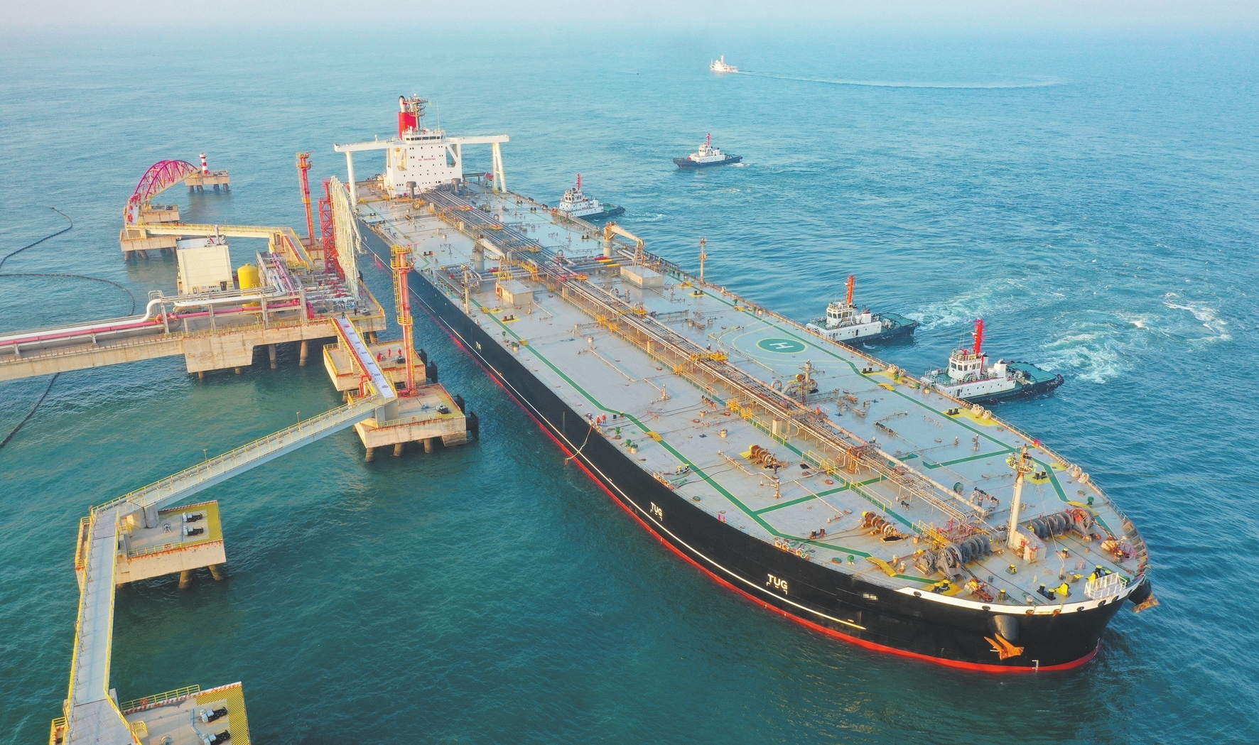 2025年12月18日,一艘装载着石化原辅料的外籍船舶泊入位于海南省儋州市的国投洋浦油储码头30万吨级原油泊位。 (新华社记者 郭程 摄)